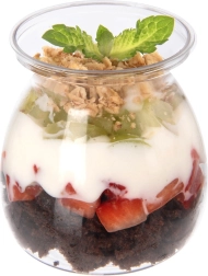 Servez vos desserts et rafraîchissements avec style et hygiène dans ces élégantes coupes de 160 ml. Les parois transparentes soulignent les couches attrayantes de yaourt, fruits, granola croustillant et crèmes, et subliment instantanément toute table de fête.