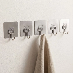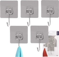 Pratique lot de cinq crochets autoadhésifs pour chaque foyer. Grâce à leur forte adhérence, ils tiennent fermement sur les surfaces lisses sans perçage. Fabriqués en acier inoxydable résistant, idéals pour la cuisine et la salle de bain pour serviettes, torchons, peignoirs ou clés. Installation simple – dégraisser, presser et c’est prêt.