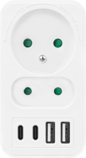 Les ports USB‑A (jusqu’à 3 A / 18 W) sont idéaux pour les accessoires et les petits appareils, tandis que l’USB‑C avec Power Delivery (jusqu’à 20 W) assure une charge rapide et stable des smartphones modernes et d’autres appareils compatibles PD. Son design compact économise de l’espace et garde les câbles bien organisés.