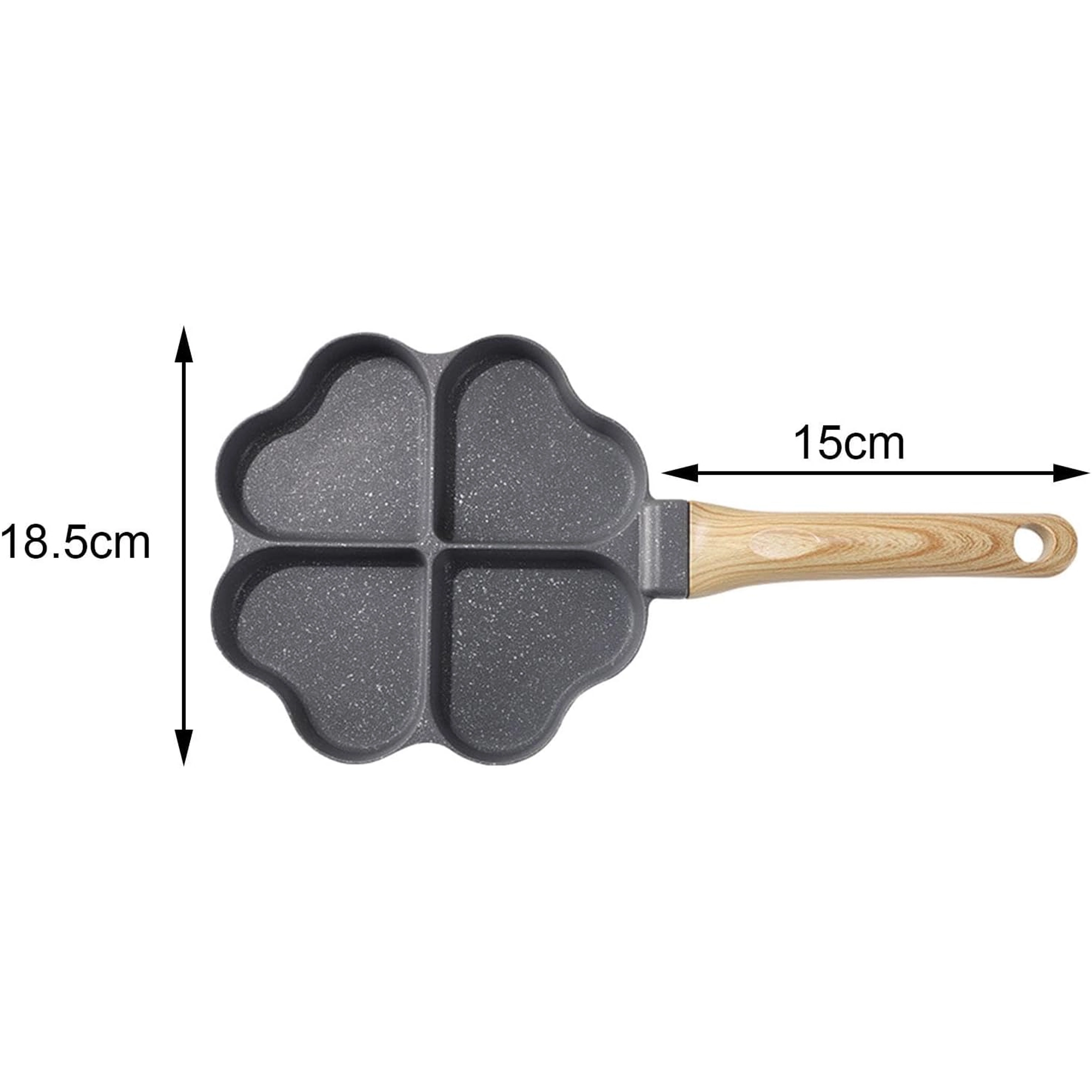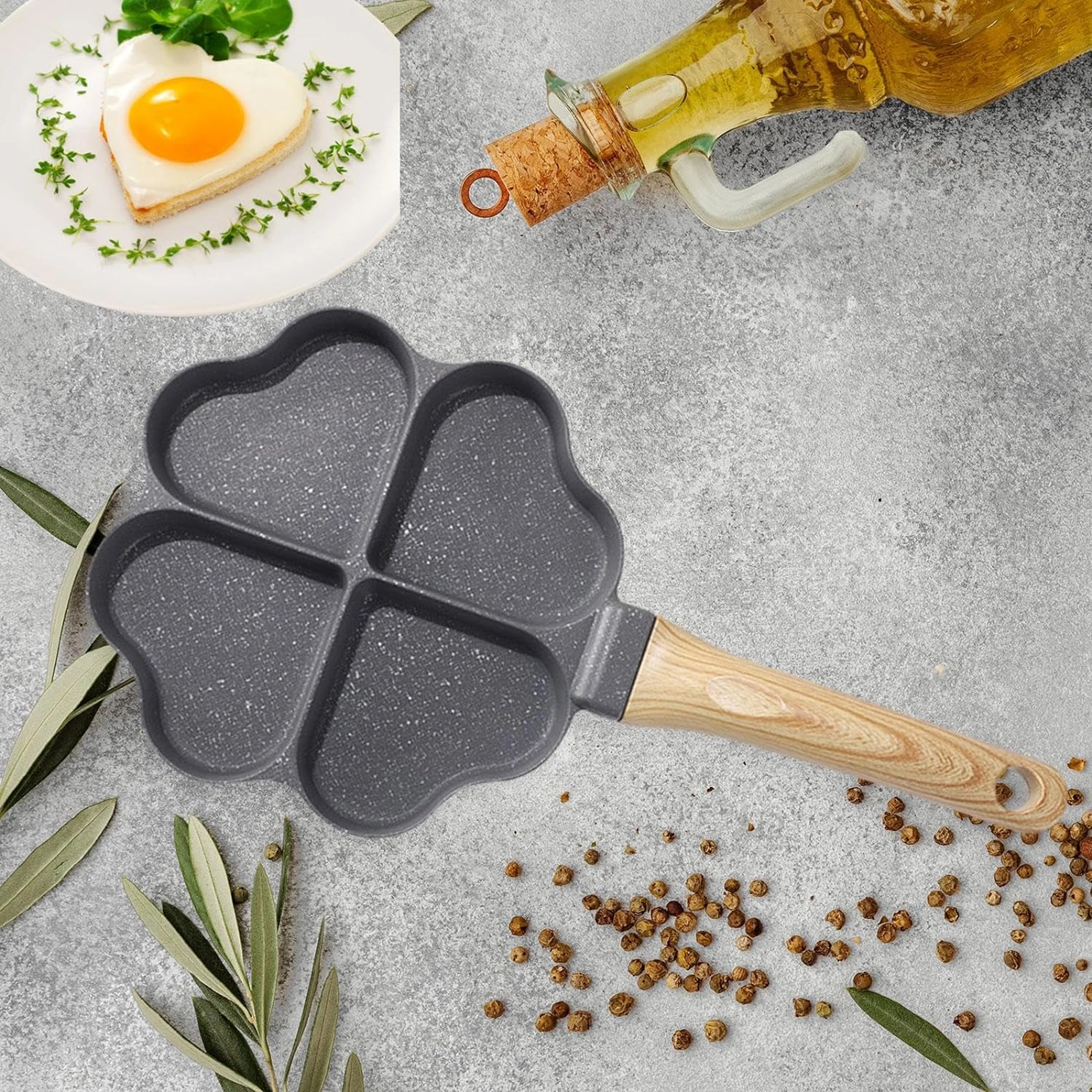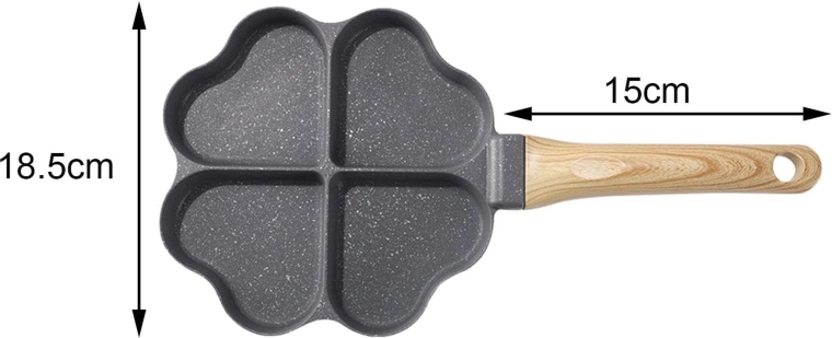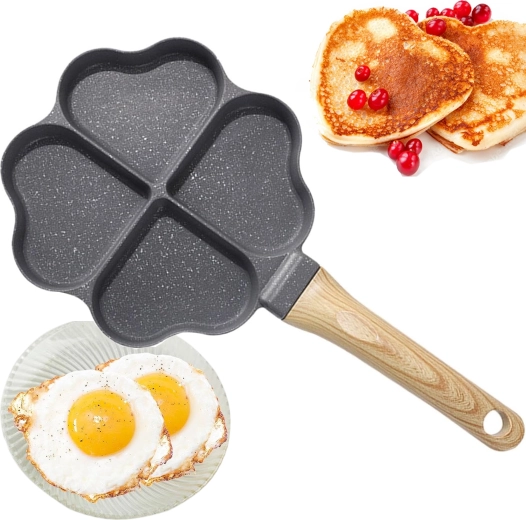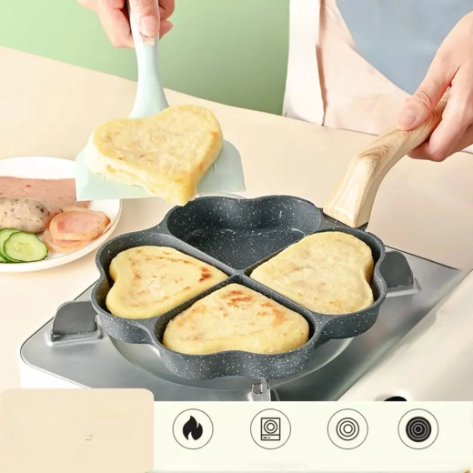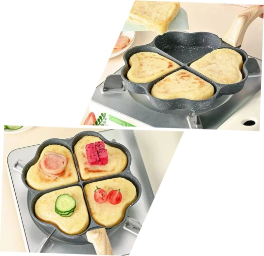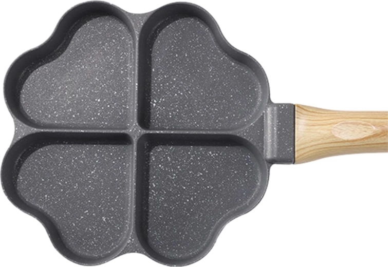 Cette poêle à quatre compartiments en forme de cœur est idéale pour préparer des portions régulières — pancakes, œufs, galettes de pommes de terre ou mini palets. Son revêtement antiadhésif, facile à nettoyer garantit un retournement net et un entretien simple, tandis que les sections séparées maintiennent chaque portion bien formée.