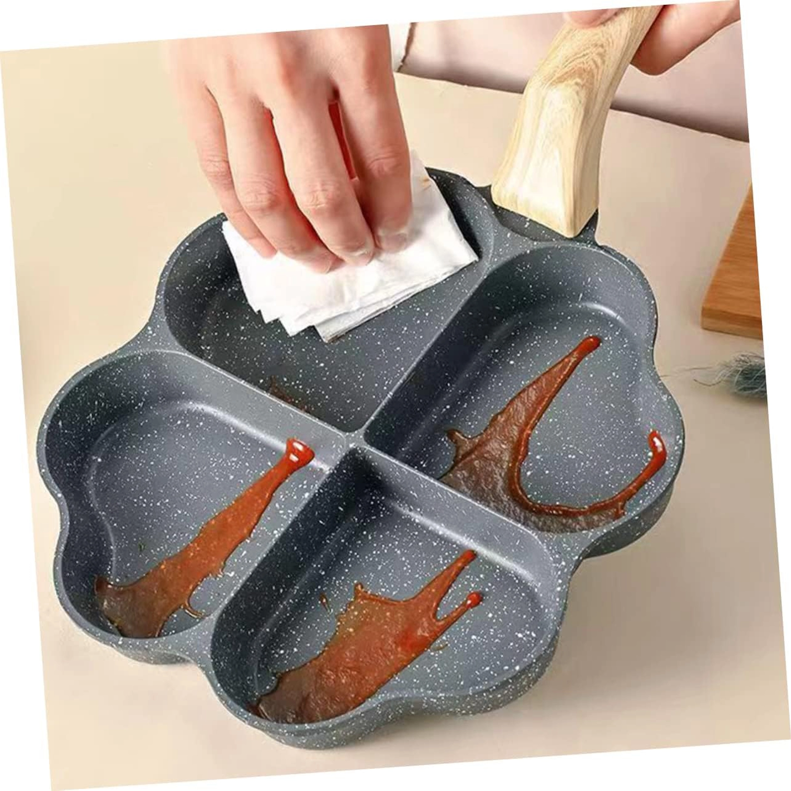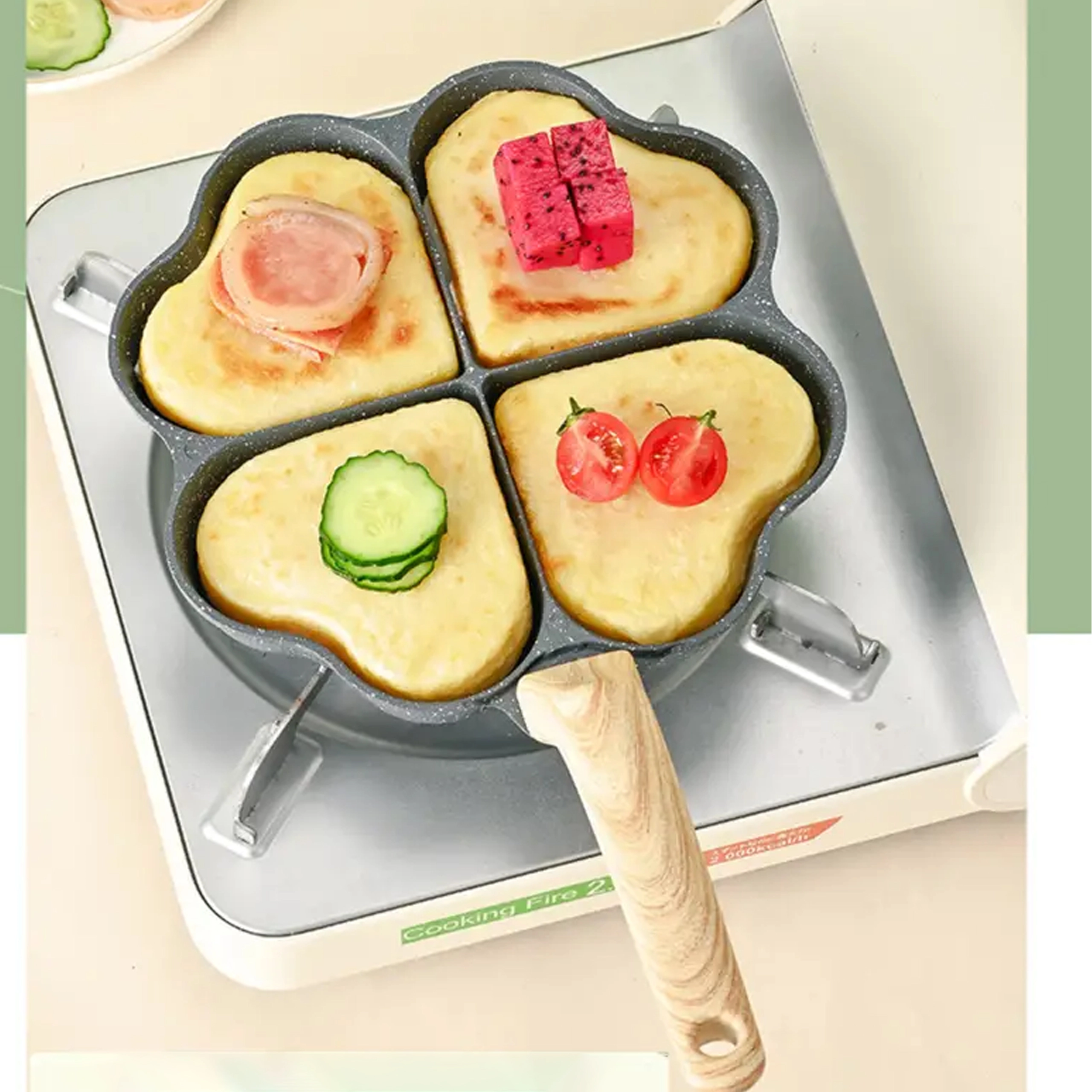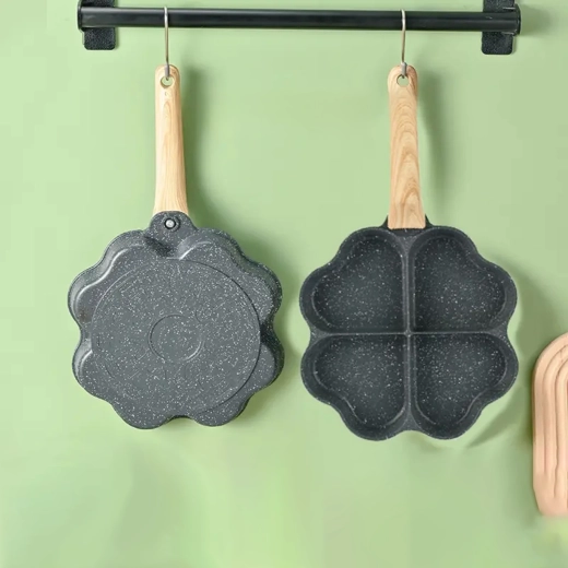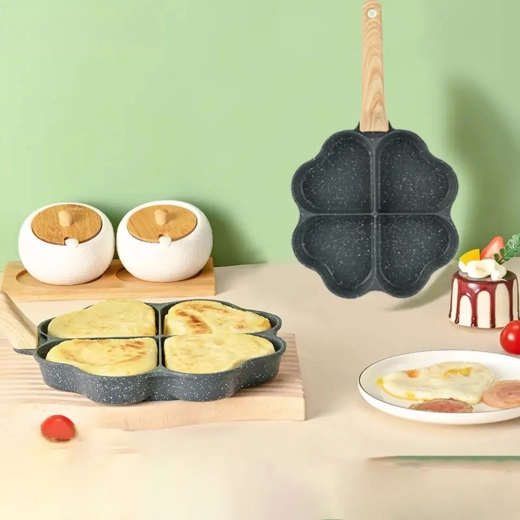 Cette poêle à quatre compartiments en forme de cœur est idéale pour préparer des portions régulières — pancakes, œufs, galettes de pommes de terre ou mini palets. Son revêtement antiadhésif, facile à nettoyer garantit un retournement net et un entretien simple, tandis que les sections séparées maintiennent chaque portion bien formée.