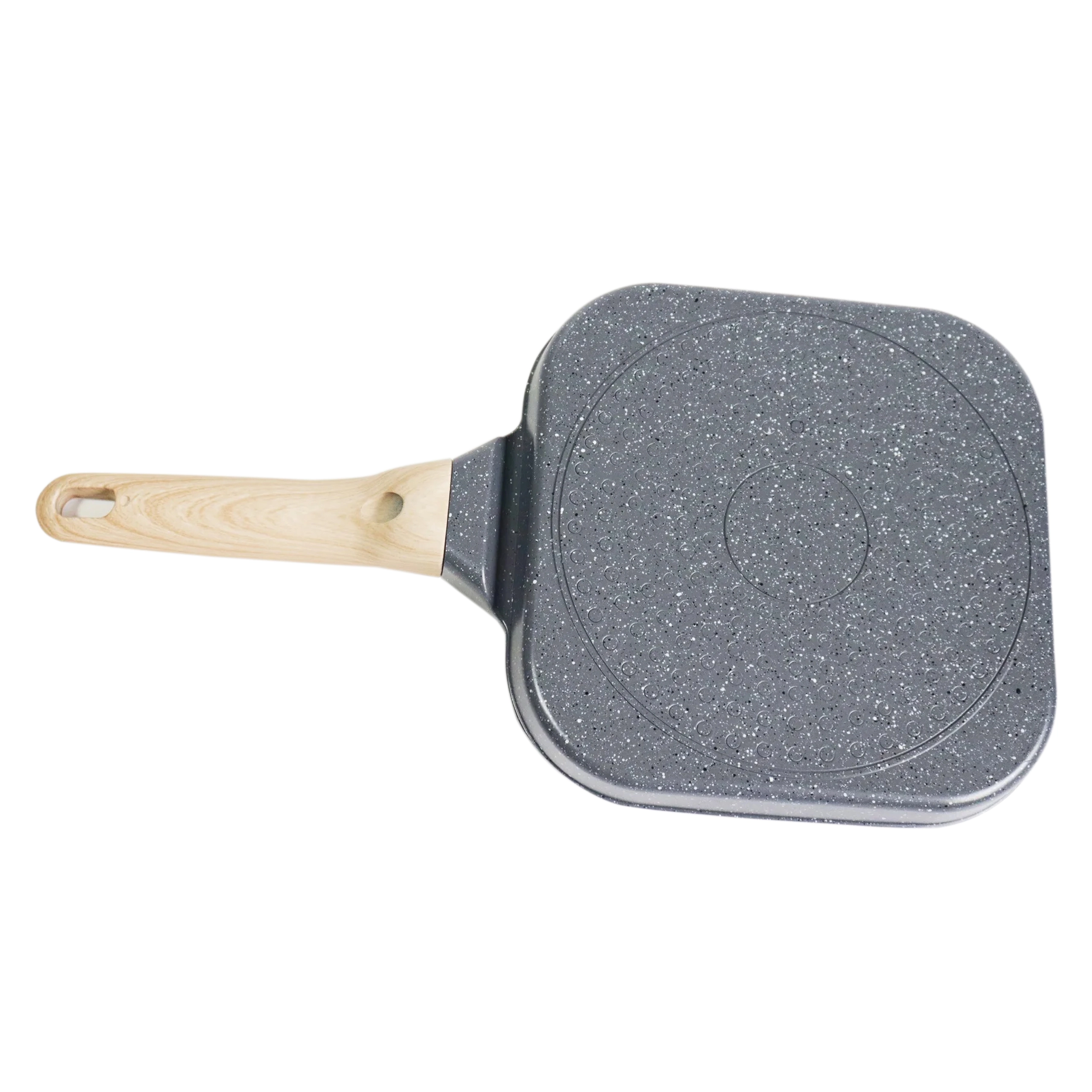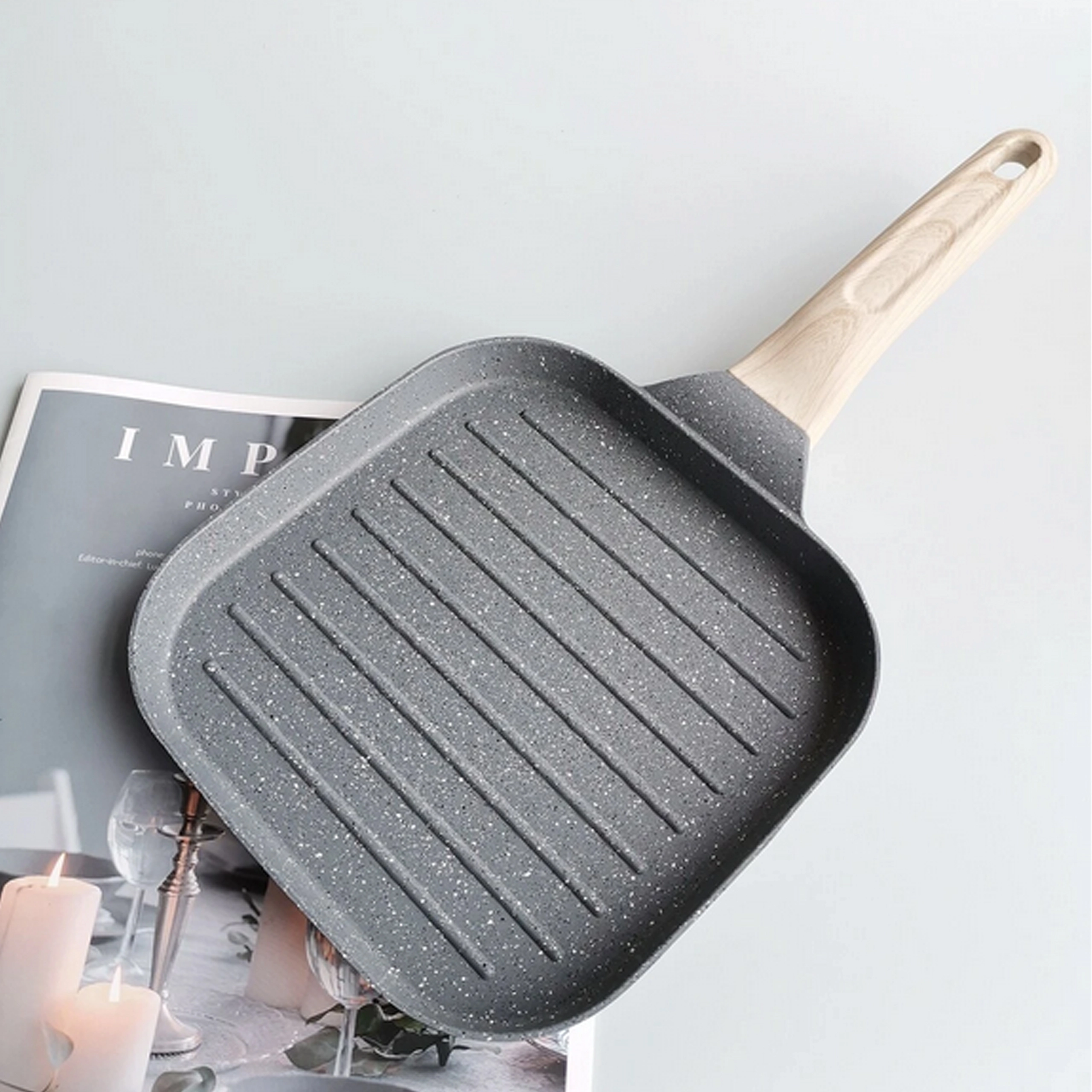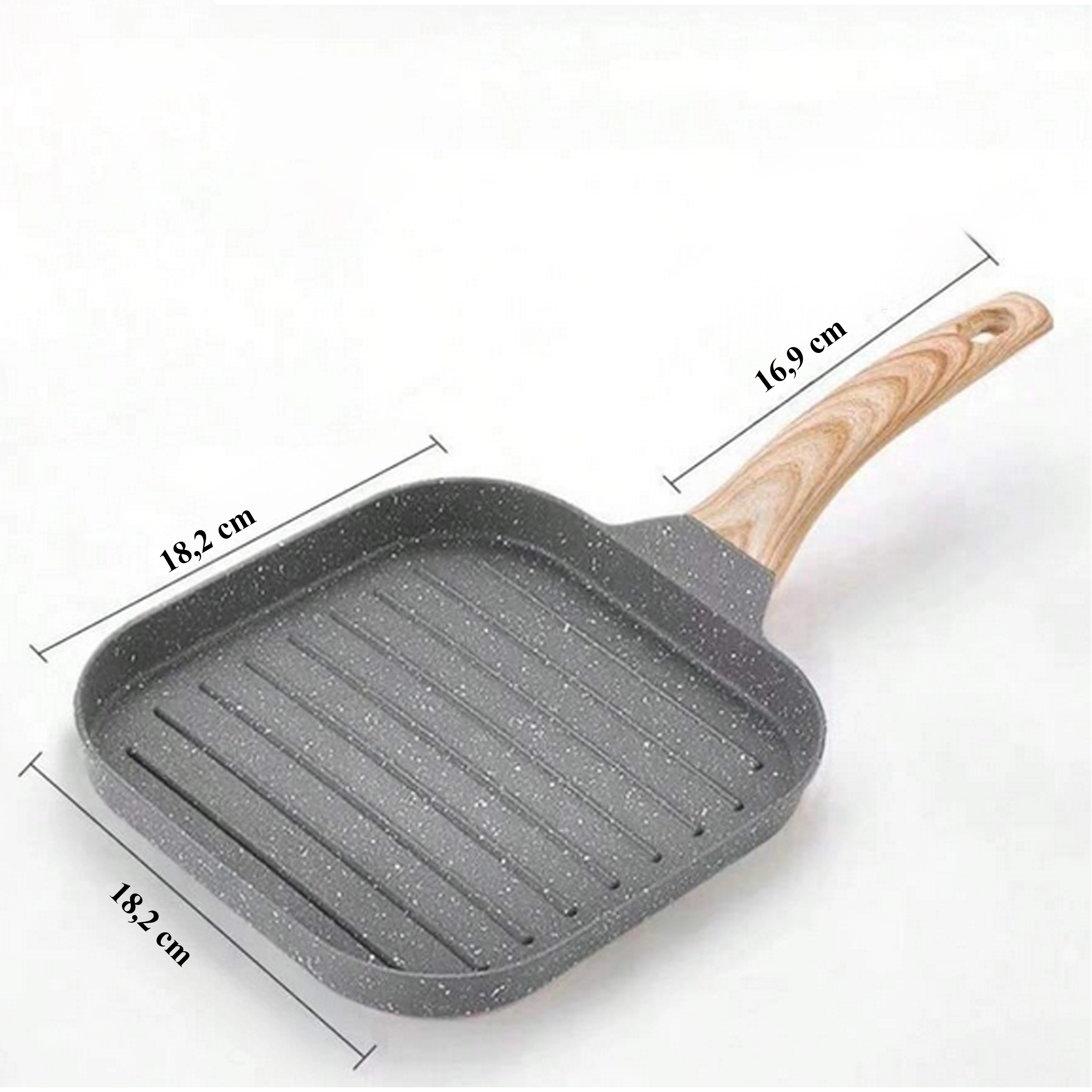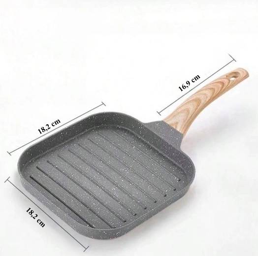 Poêle grill carrée avec revêtement antiadhésif et poignée aspect bois