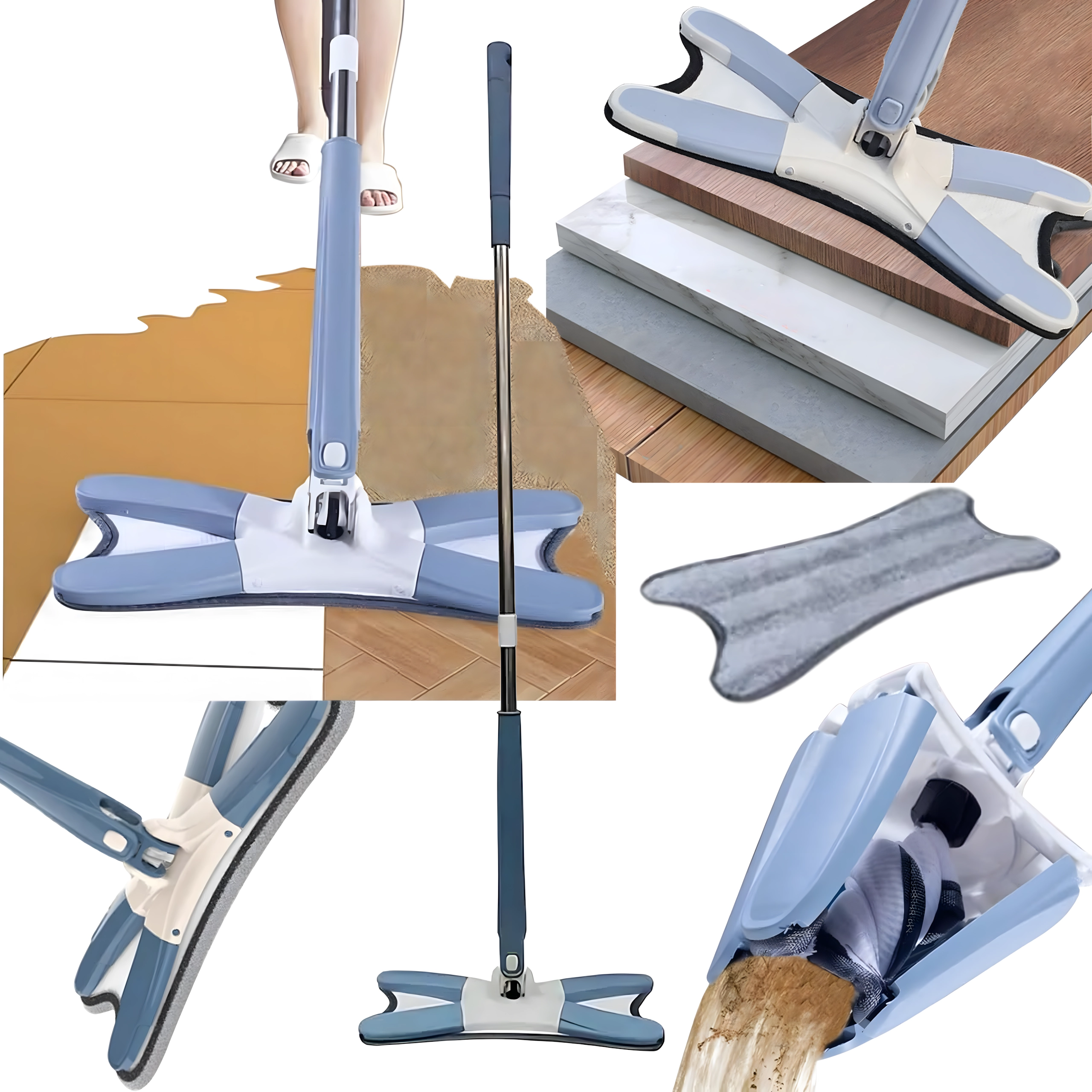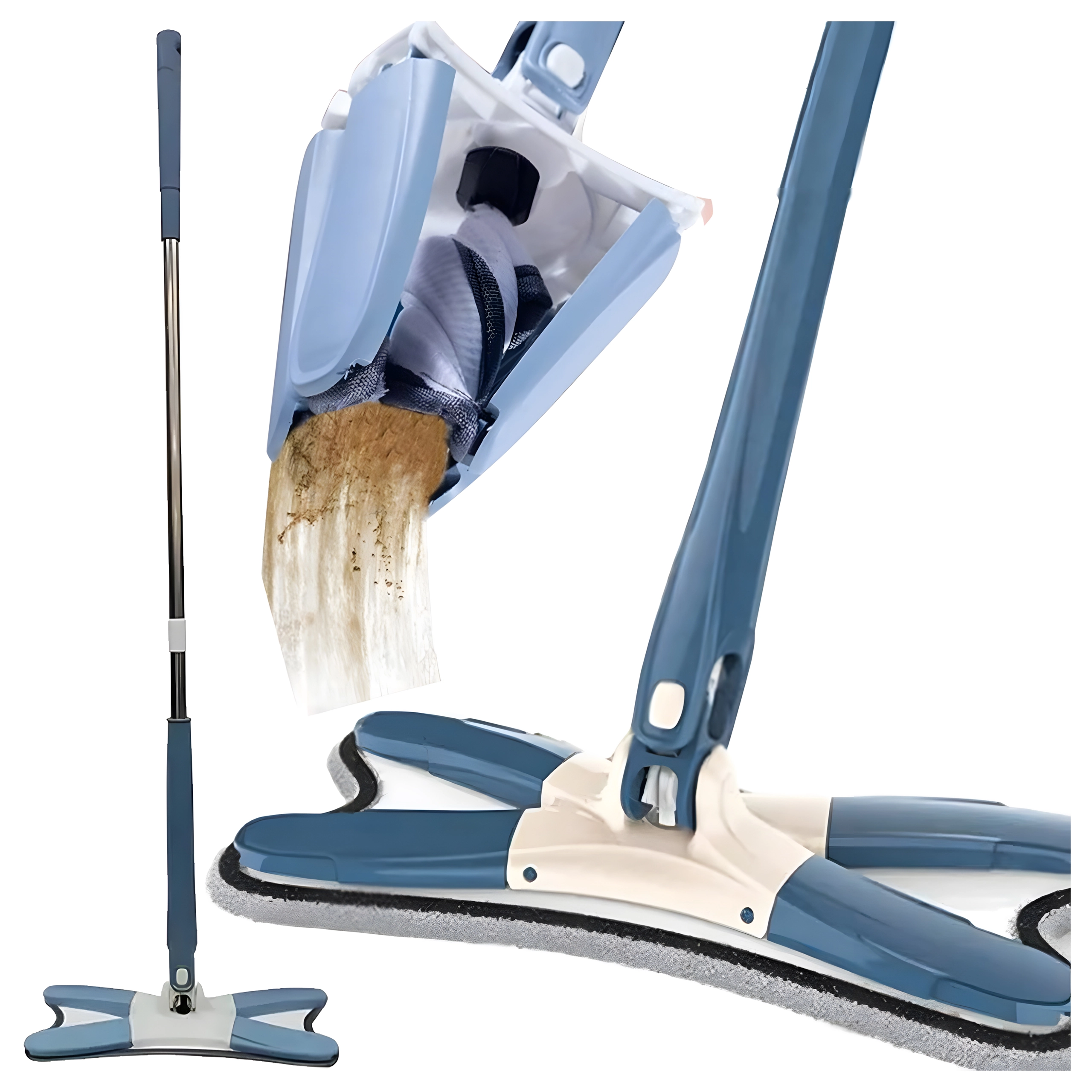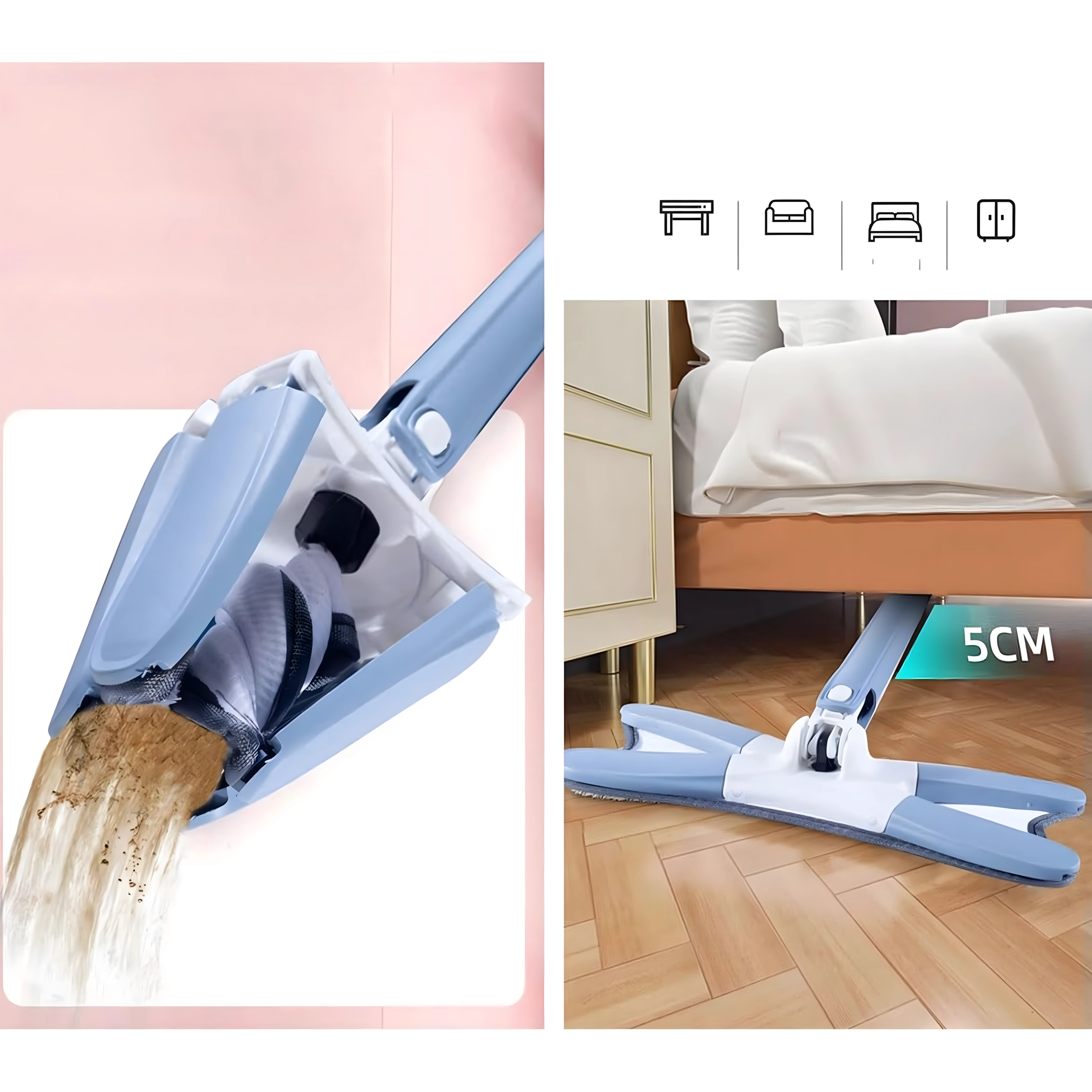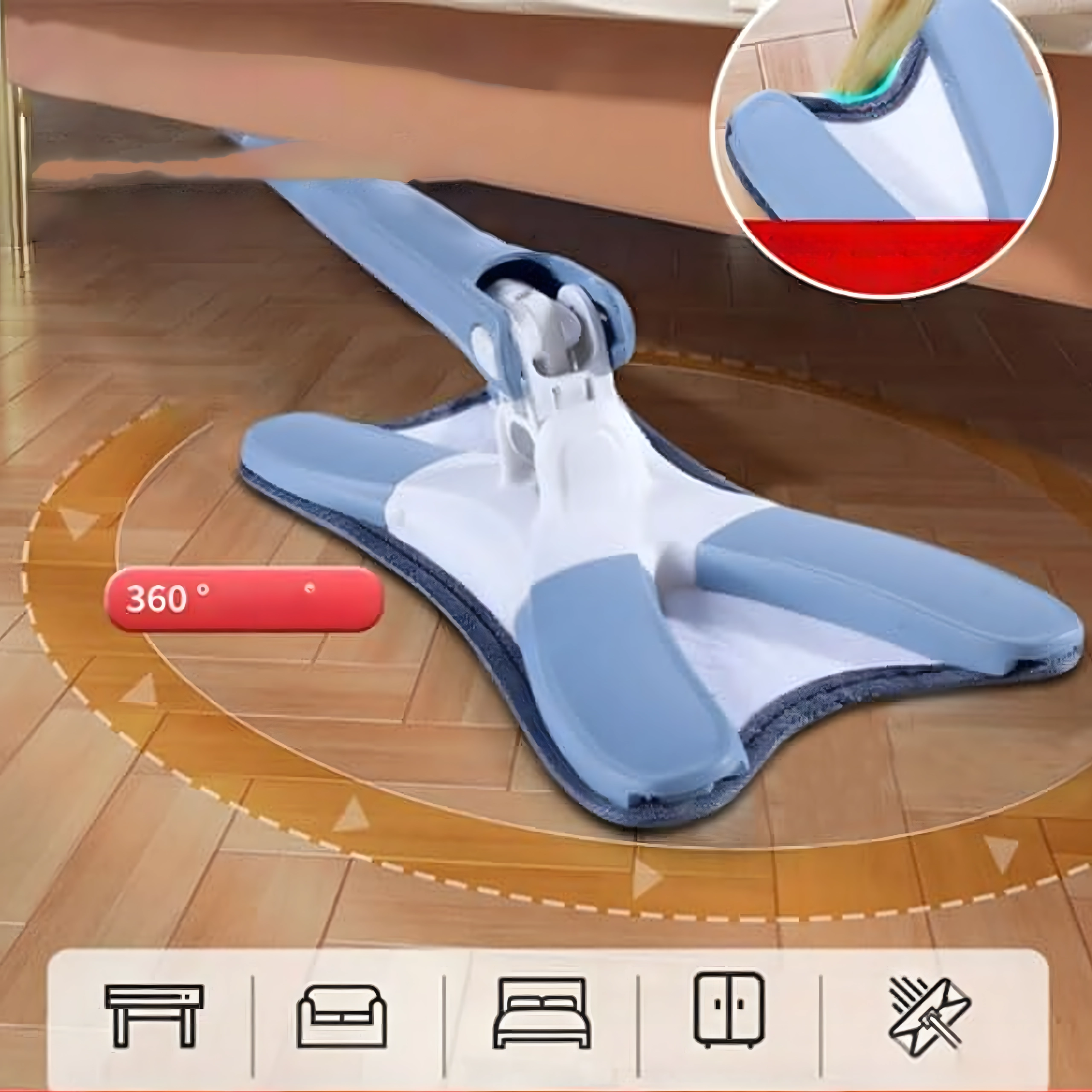 - Serpillière plate avec tête pliable en X et mécanisme auto-essorant