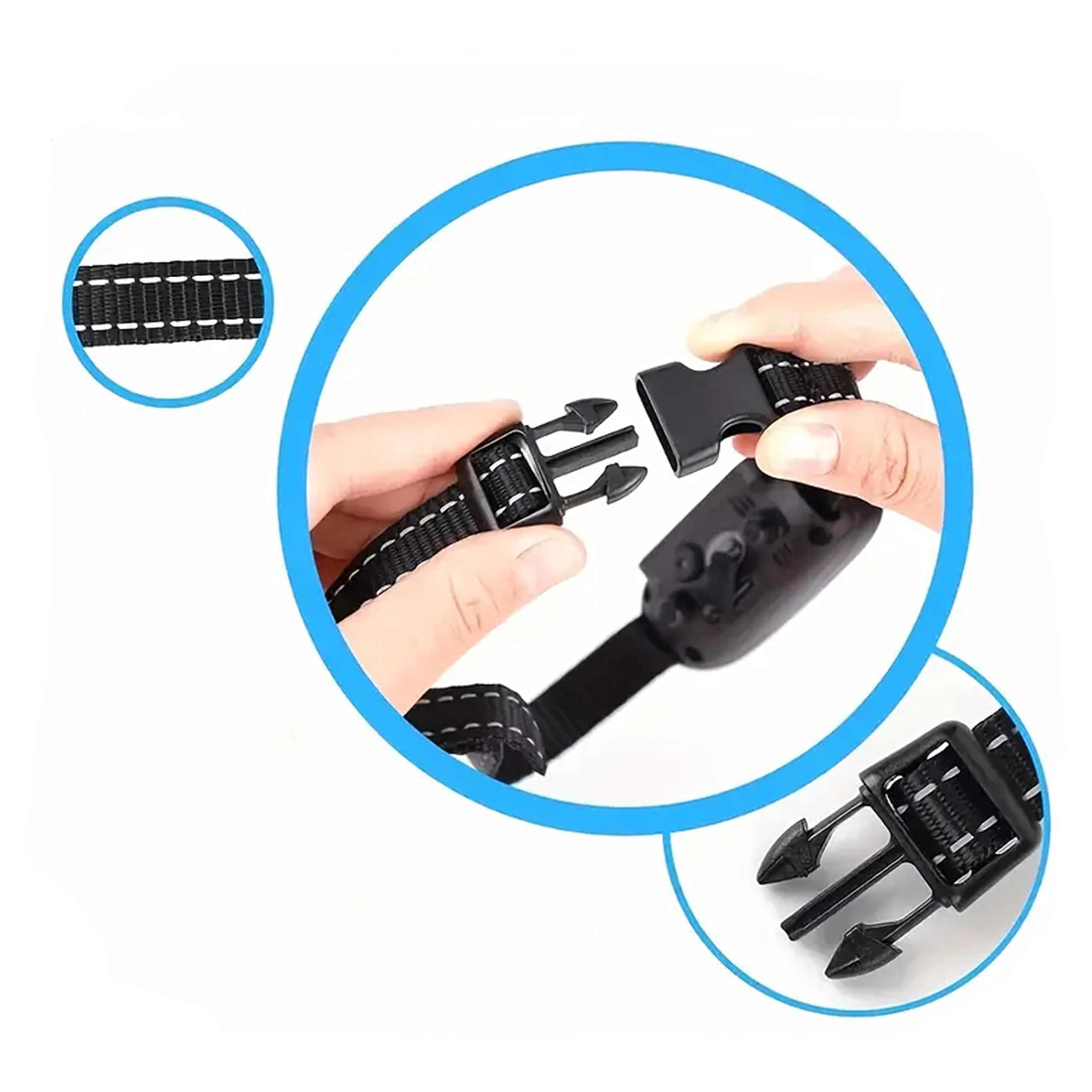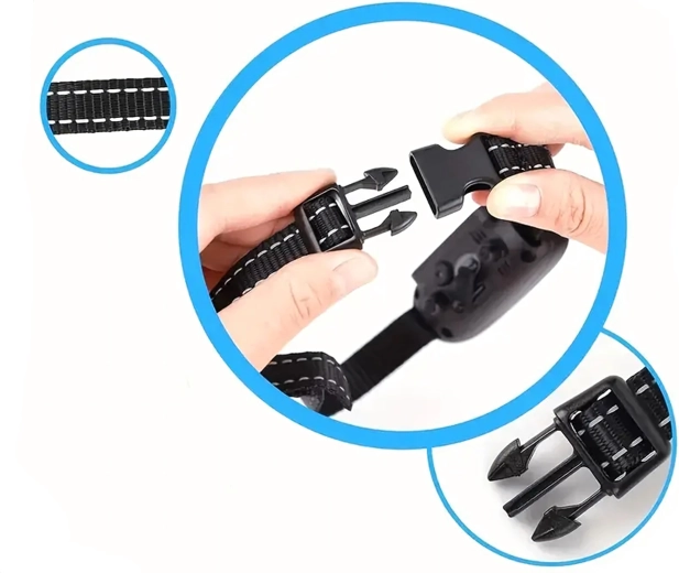 La sangle en nylon réfléchissant avec boucle à dégagement rapide s’ajuste facilement au cou du chien pour un port sûr et confortable.