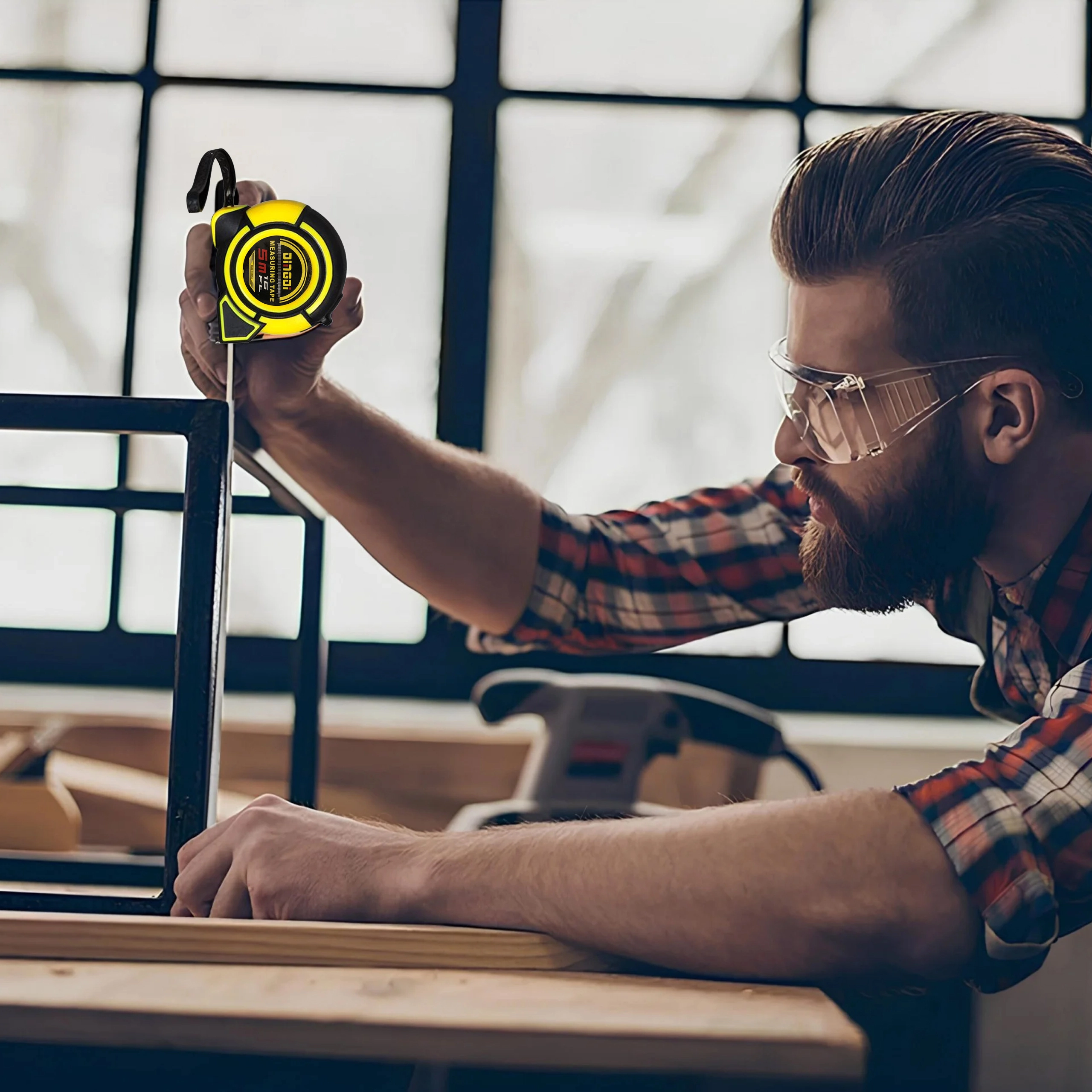 Le frein de blocage pratique permet de verrouiller le ruban à la longueur souhaitée, tandis que le crochet métallique à l’extrémité facilite un accrochage précis sur les arêtes des matériaux. Grâce au clip de ceinture et à la dragonne, vous avez toujours le mètre à portée de main – idéal pour les mesures lors des montages, travaux de menuiserie et rénovations.