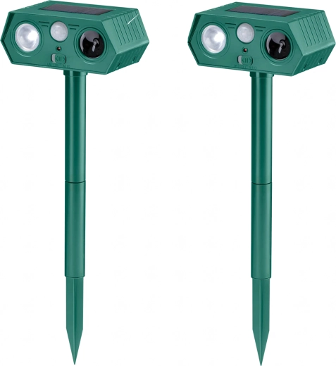 Protégez votre jardin sans produits chimiques : ce répulsif solaire à ultrasons pour animaux à installation facile en terre grâce à un piquet éloigne efficacement chats, chiens, renards, fouines, oiseaux et rongeurs. Le capteur de mouvement PIR intégré active l’ultrason et des flashs LED d’avertissement, tandis que sa conception résistante à toutes les intempéries et son alimentation par panneau solaire assurent un fonctionnement sans entretien. Le coffret comprend 2 pièces pour couvrir une zone plus large.