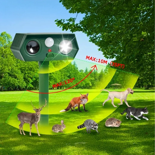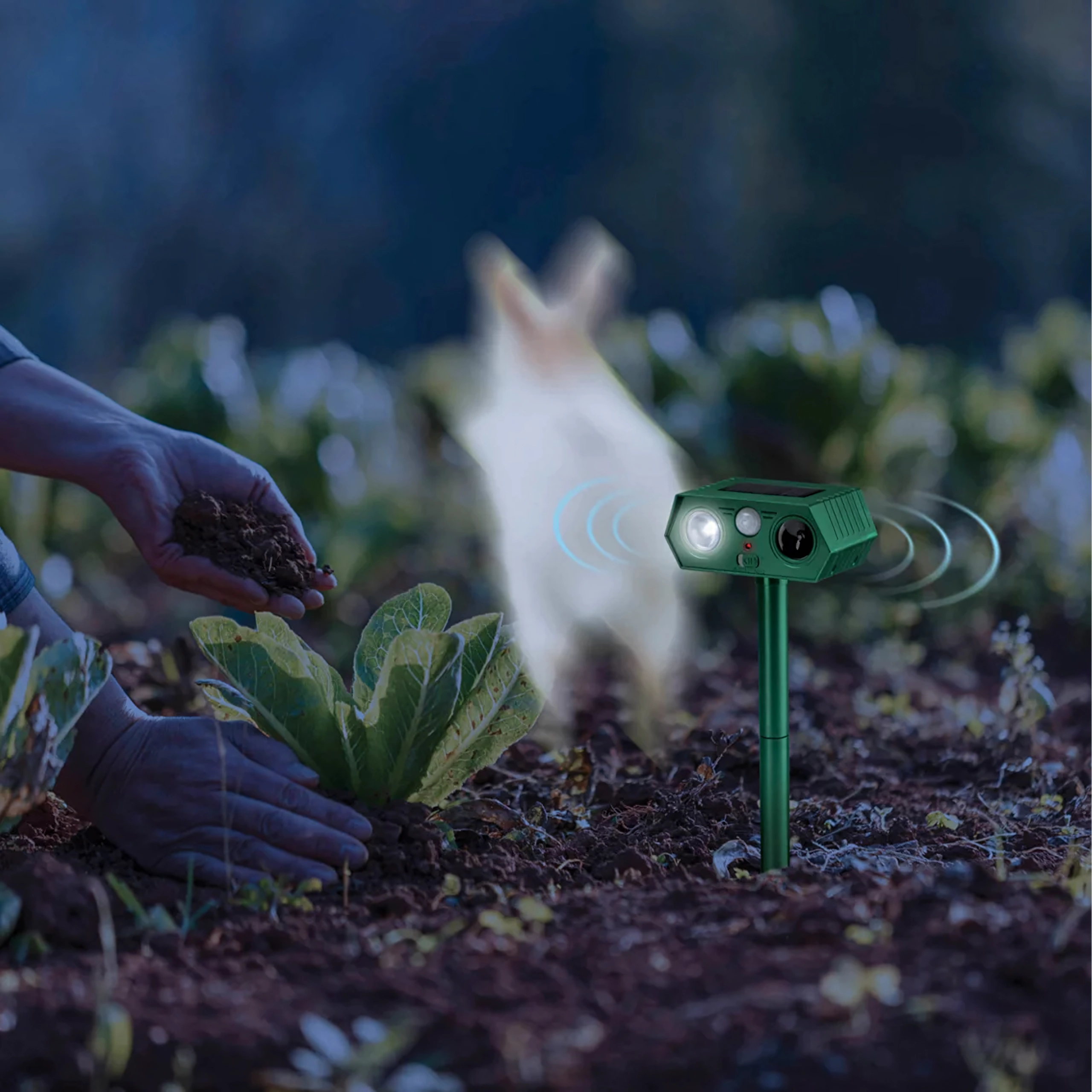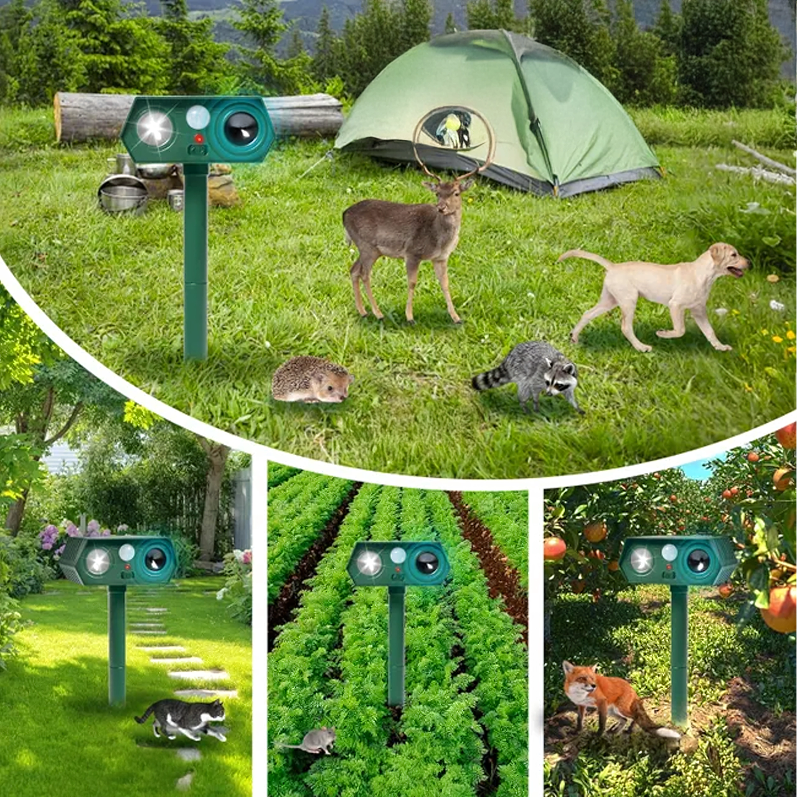 Le haut-parleur ultrason et la LED lumineuse aident à dissuader chats, chiens, renards, fouines, lièvres, écureuils, oiseaux et petits rongeurs.