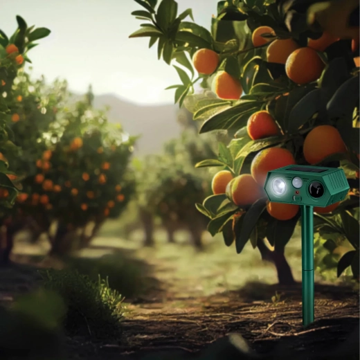 L’installation ne prend que quelques minutes – il suffit d’enfoncer le piquet dans le sol et d’orienter l’appareil. Le lot de 2 permet de protéger efficacement une zone plus vaste du jardin, des allées ou du verger. L’appareil est discret pour l’humain, mais incommodant pour la faune indésirable.