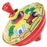 Cette toupie traditionnelle avec motif de ferme est un jouet idéal pour les tout-petits. Son mécanisme simple à pression met la toupie en rotation, produisant un son caractéristique et des stimuli visuels.