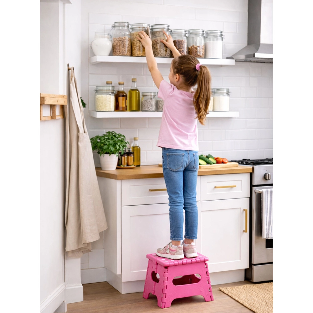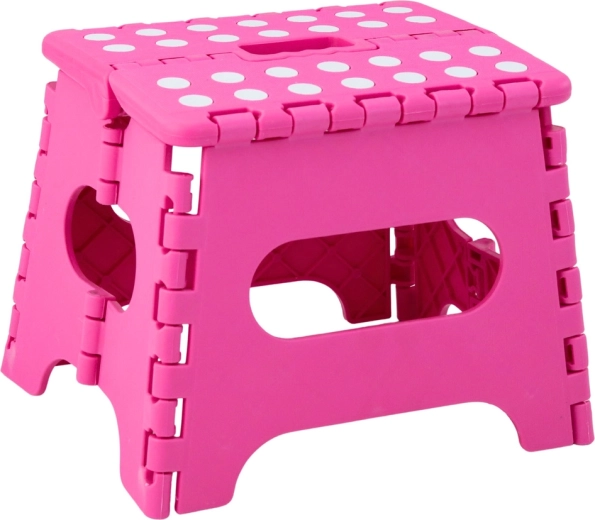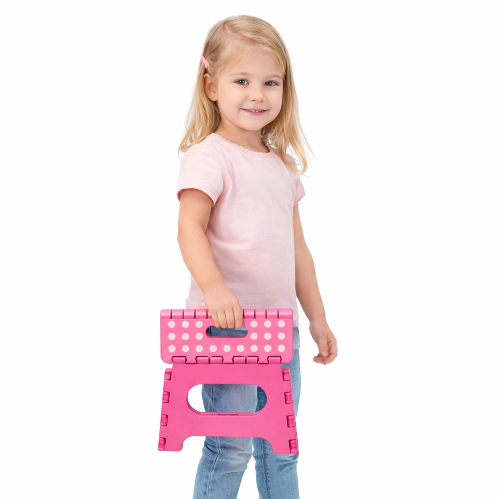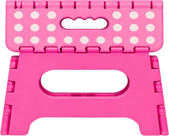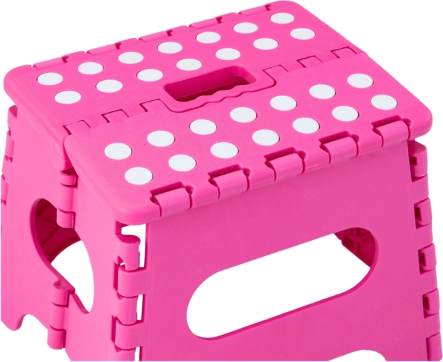 Le marchepied pliant rose est fabriqué en plastique résistant, garantissant solidité et longue durée de vie. Sa surface supérieure antidérapante à pois améliore la sécurité d’utilisation, même en milieu humide. La poignée intégrée permet un transport rapide et un pliage facile à plat pour un rangement compact.