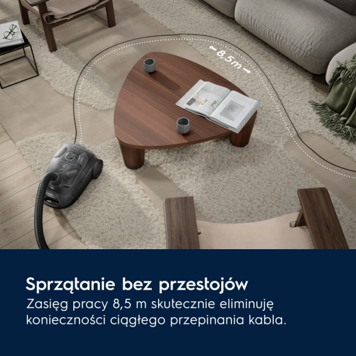 • Rayon d’action de 8,5 m pour un nettoyage fluide et ininterrompu.