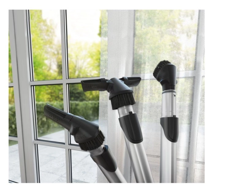 Se transforme facilement en suceur plat, brosse à poussière ou embout pour tissus d’ameublement. Idéale pour les canapés, les coins, les plinthes et les espaces étroits.