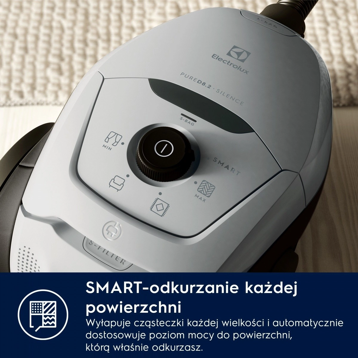 Le Pure D8.2 Silence PD82-4MG offre une combinaison de silence, performance et hygiène de premier plan. La technologie SmartMode reconnaît automatiquement le type de sol et ajuste l’aspiration pour un résultat optimal sans réglages manuels. Le système innovant PureSound réduit le bruit à seulement 57 dB(A), vous permettant d’aspirer même pendant le sommeil des enfants.