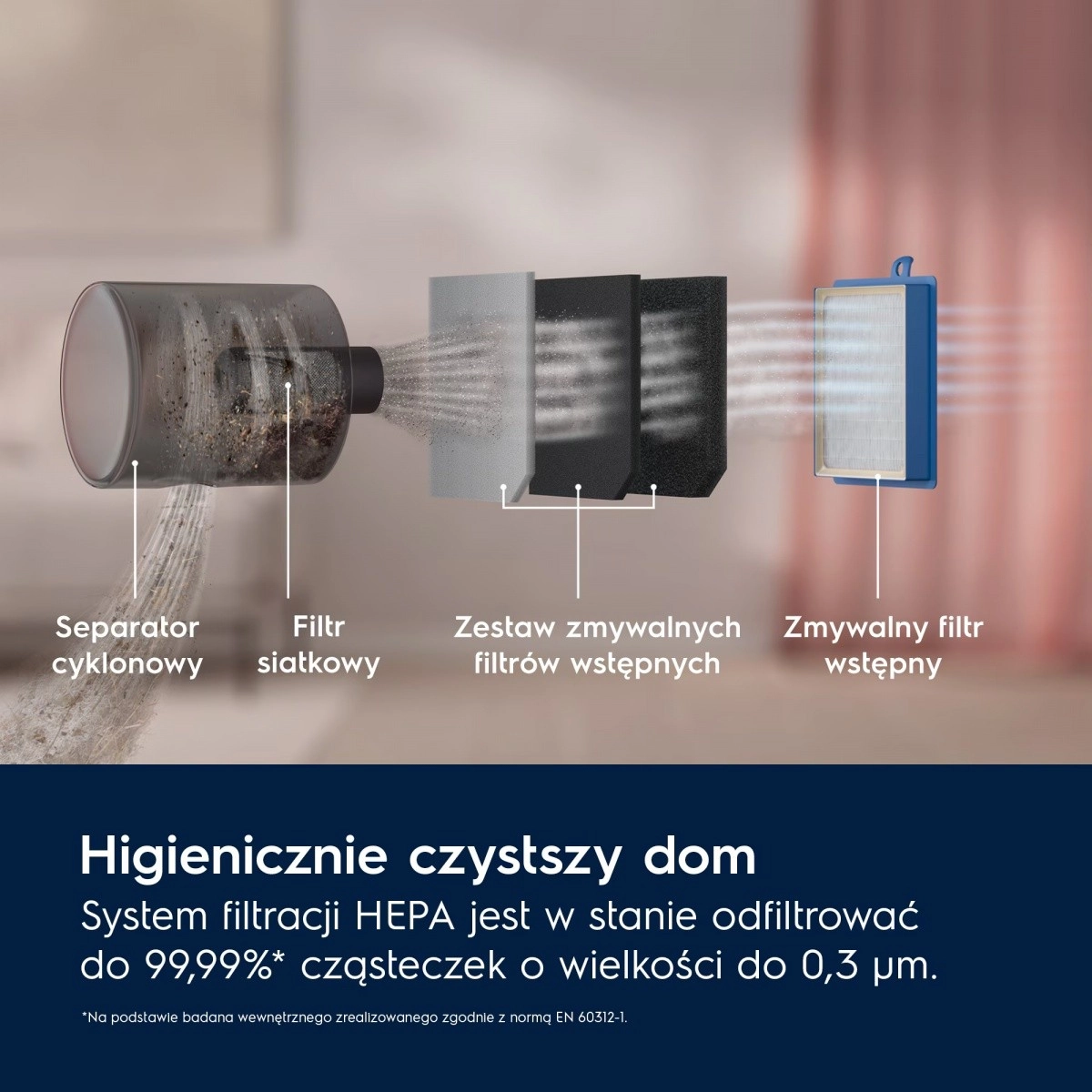 - Filtration HEPA 99,99 % des particules jusqu’à 0,3 μm – poussières fines, acariens et allergènes pour un air plus sain à la maison.