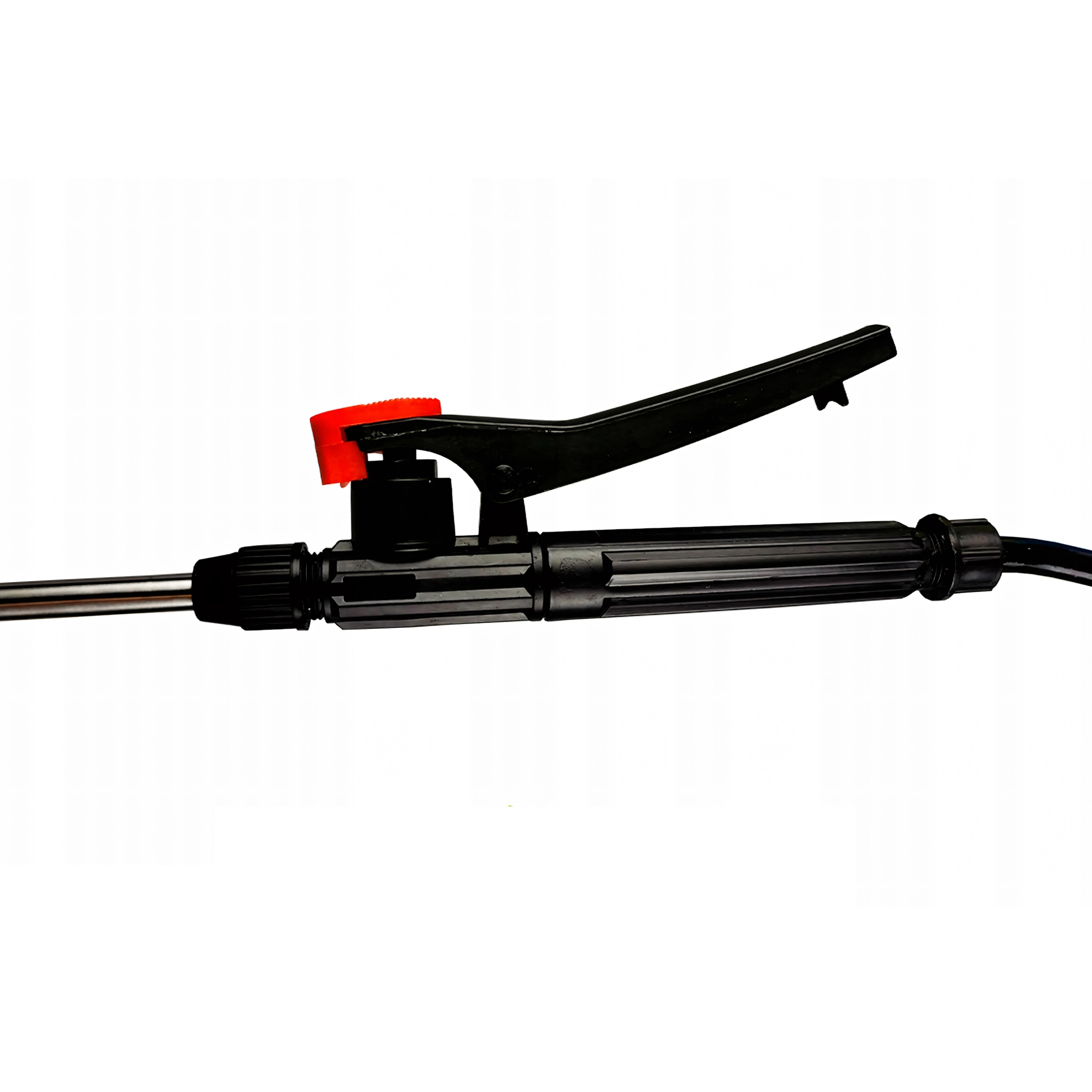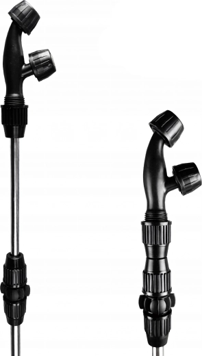 La longue lance métallique avec poignée pistolet et réglage permet une application ciblée et une portée sûre même dans les massifs denses.