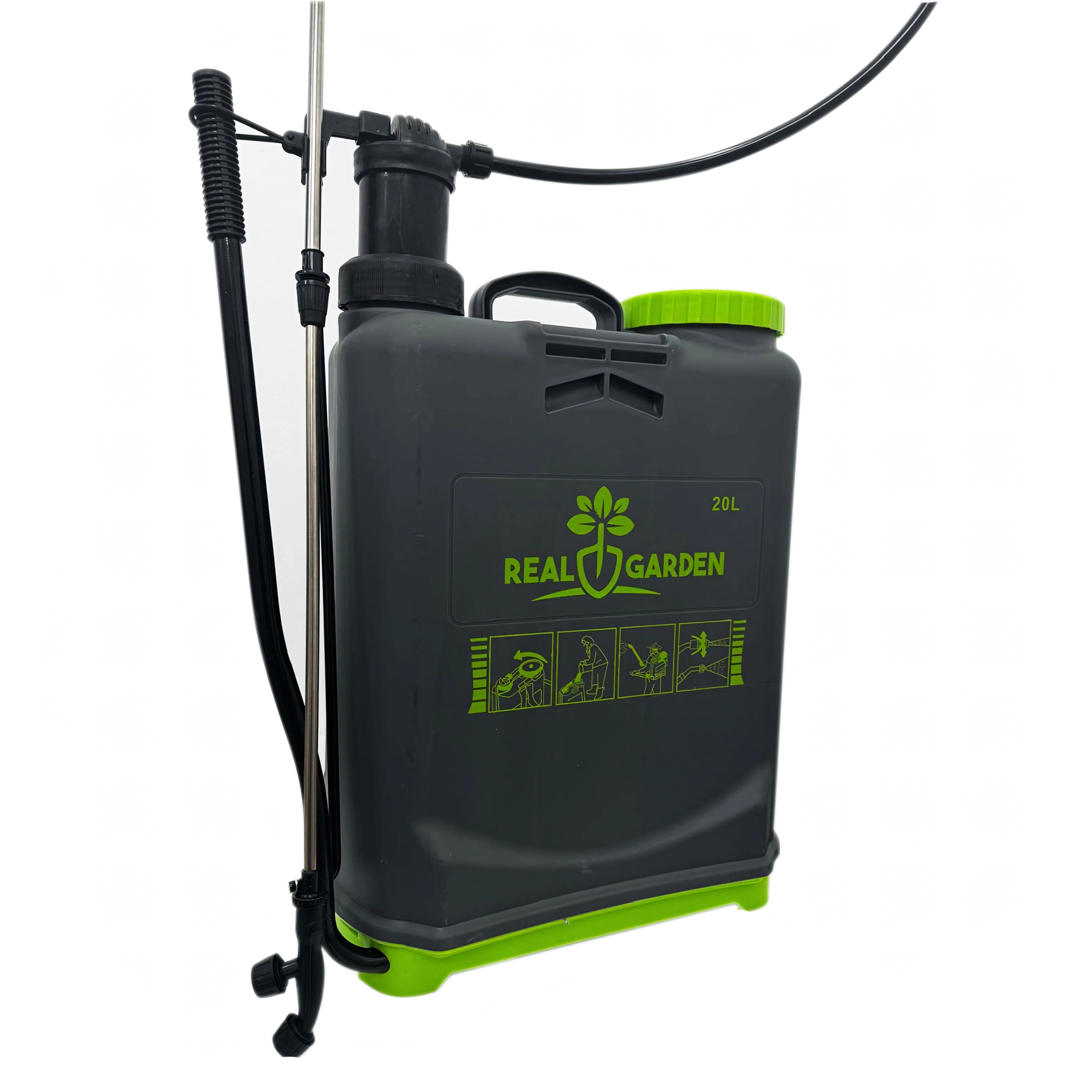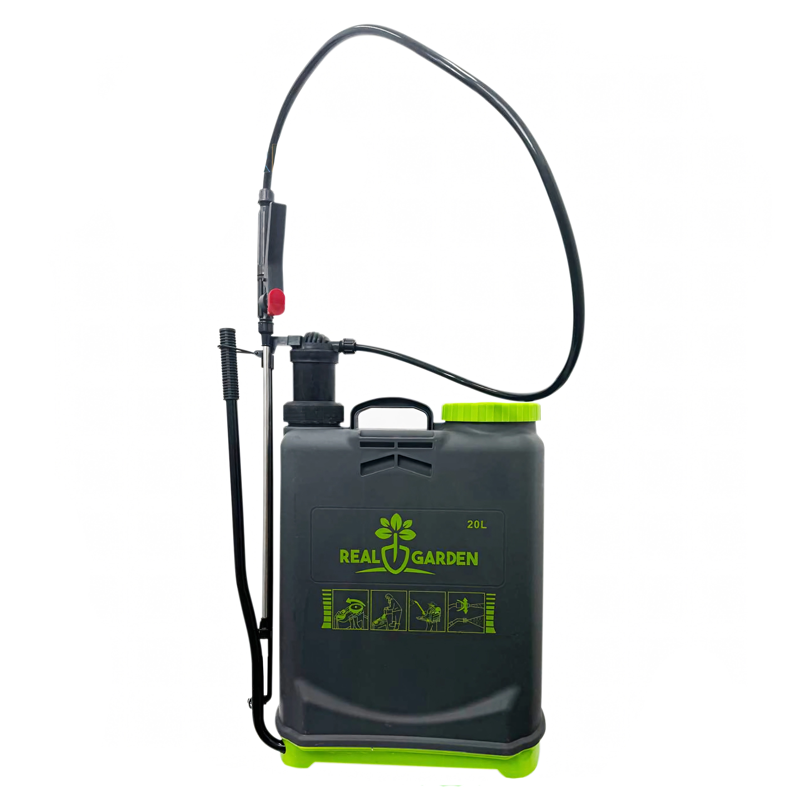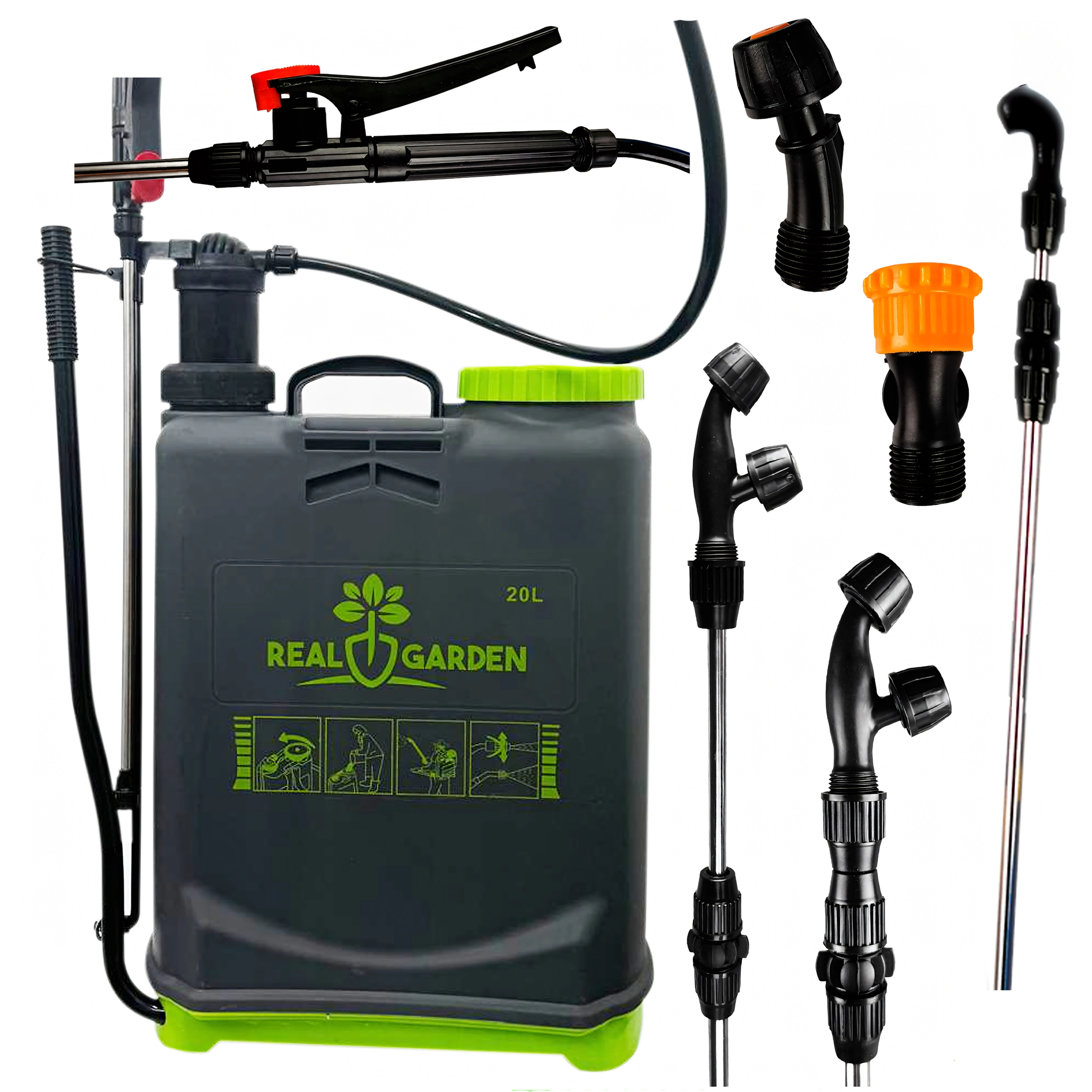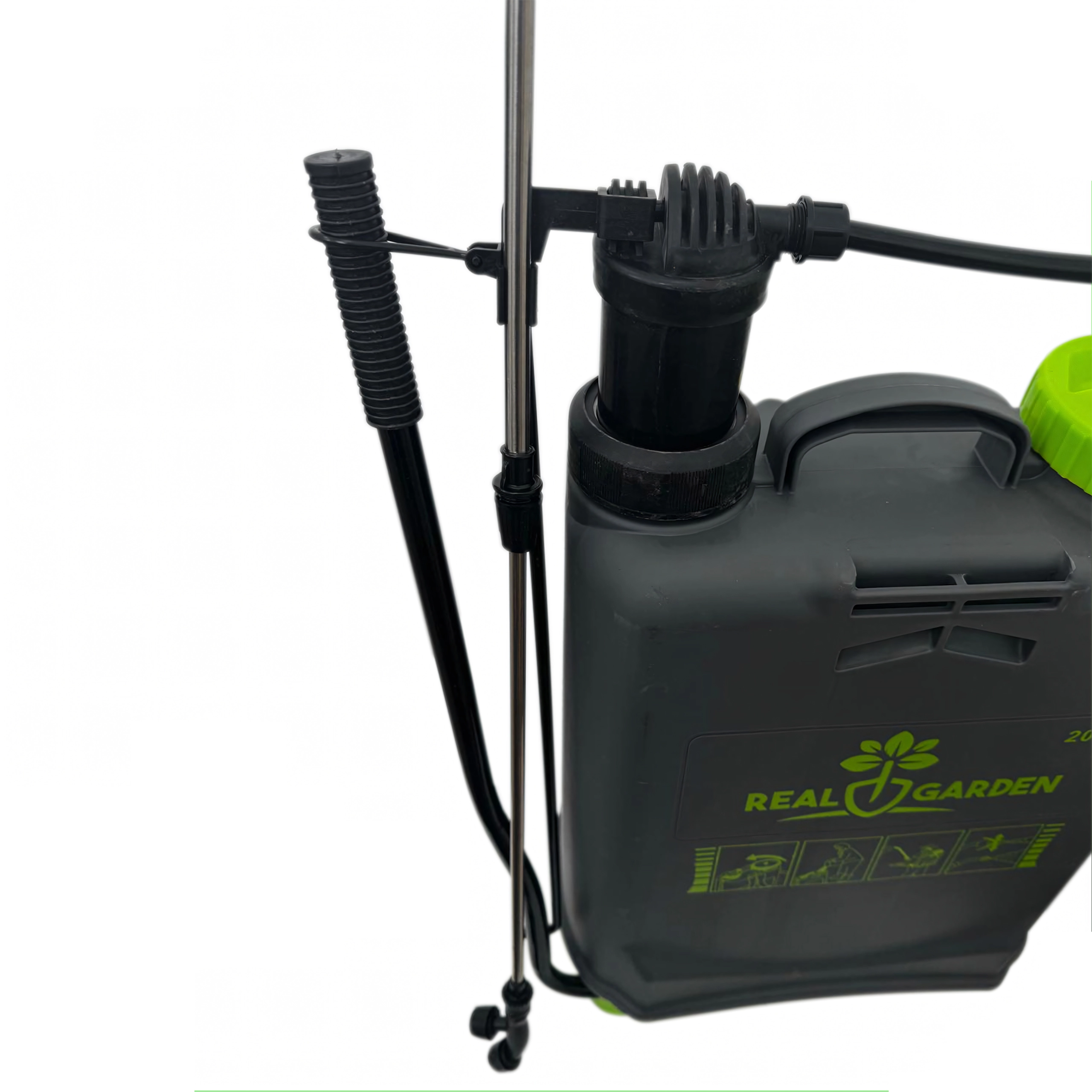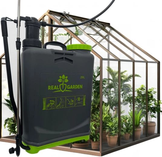 Il comprend plusieurs buses interchangeables pour différents types de jets — de la fine brume au jet continu. Des bretelles confortables répartissent la charge sur le dos et la base stable apporte de l’assurance lors de la pose. Idéal pour les serres, massifs, vergers et pelouses.