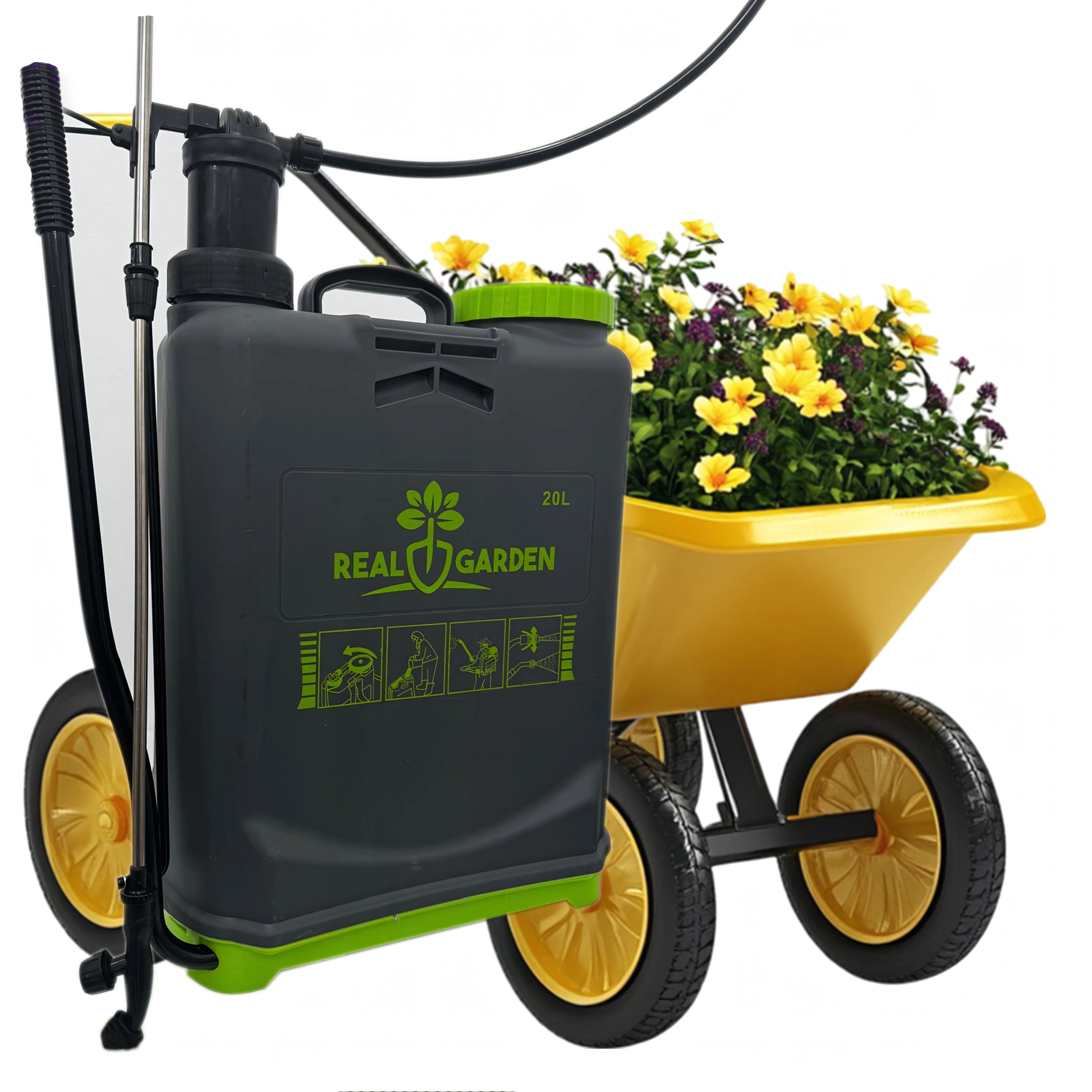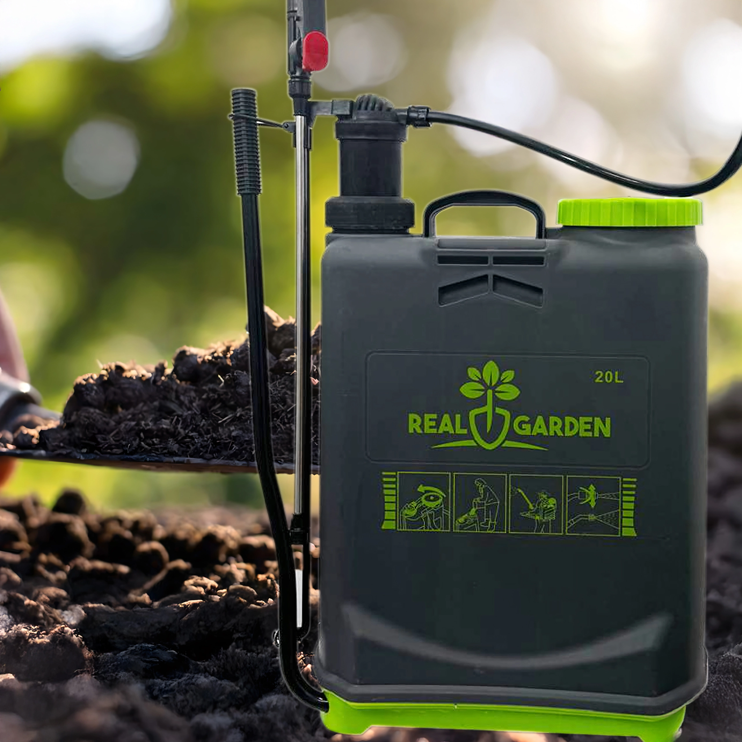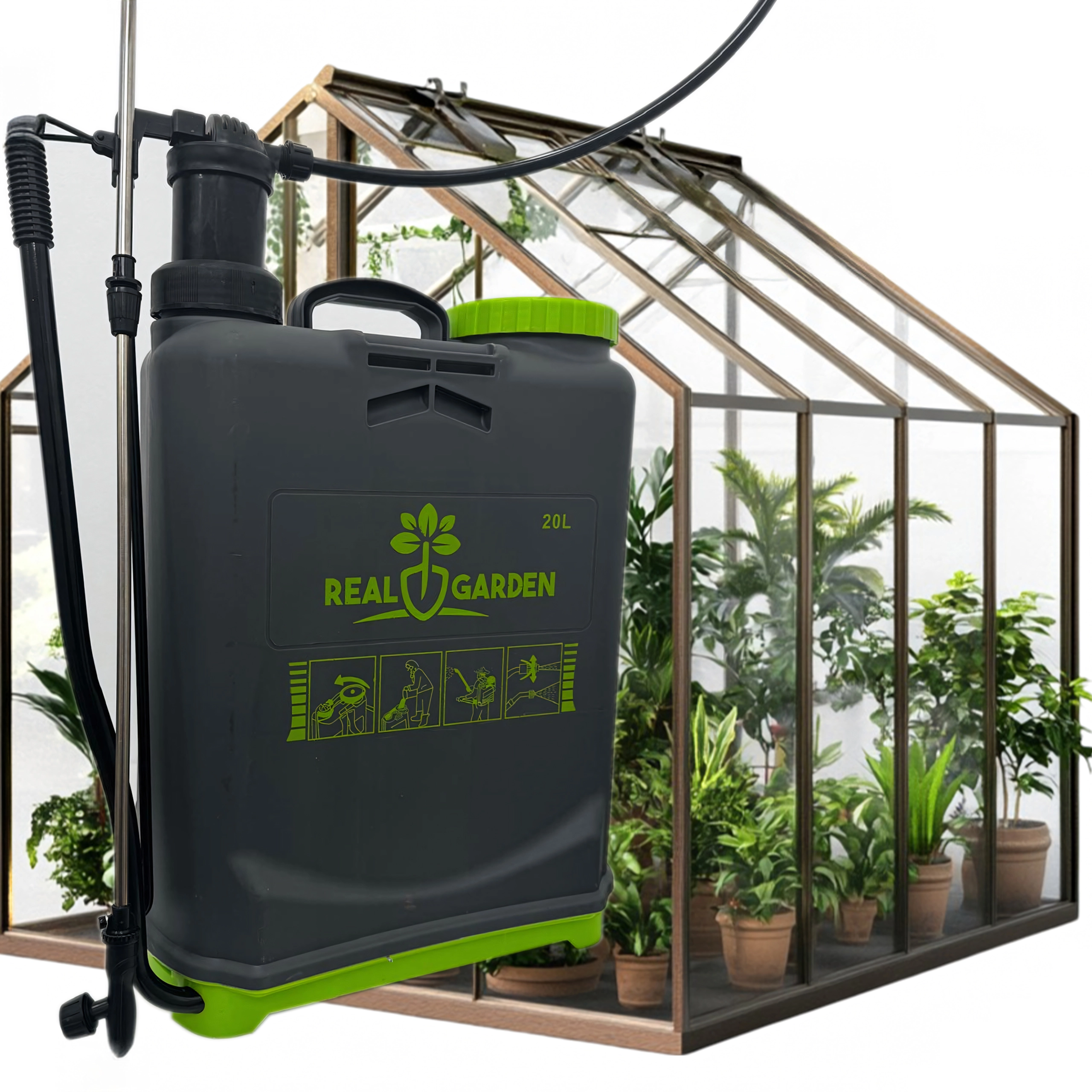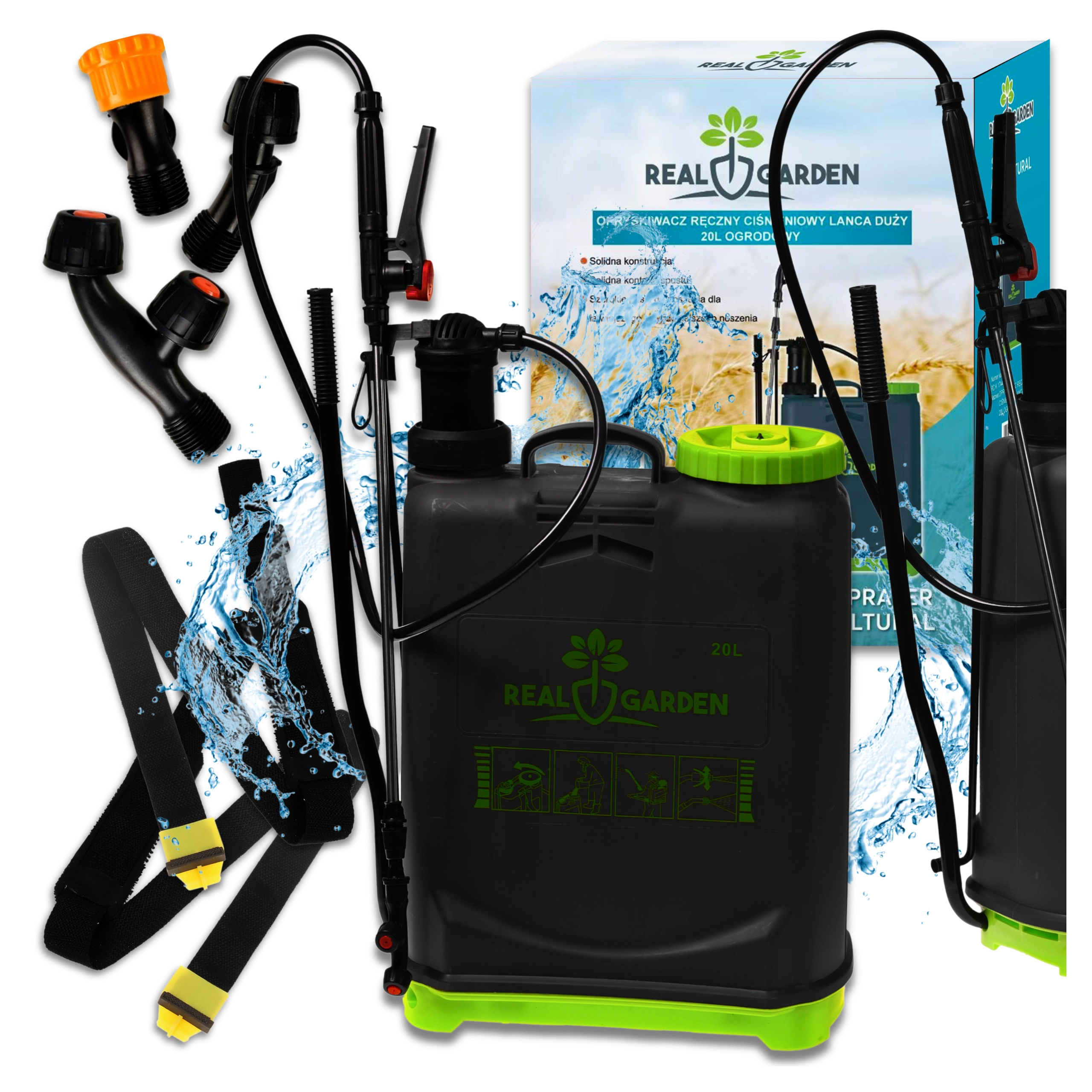 Il comprend plusieurs buses interchangeables pour différents types de jets — de la fine brume au jet continu. Des bretelles confortables répartissent la charge sur le dos et la base stable apporte de l’assurance lors de la pose. Idéal pour les serres, massifs, vergers et pelouses.