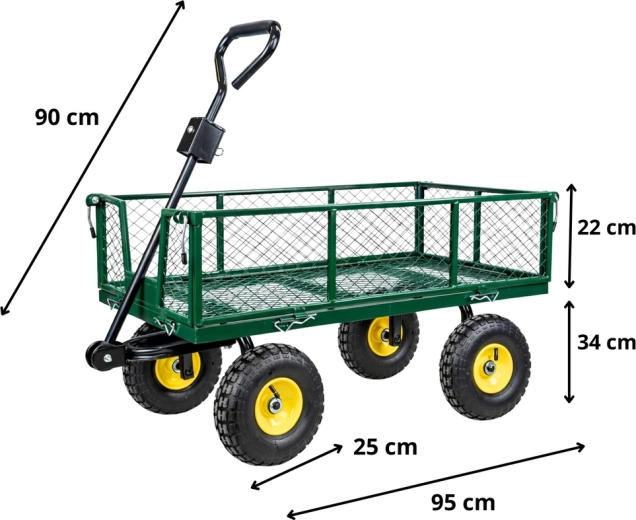 Vous cherchez une aide polyvalente pour le jardin, le chantier ou l’atelier ? Ce chariot de jardin en acier d’une capacité de 200 kg transporte terre, bois, pierres et outils. La structure stable à quatre roues avec pneus gonflables atténue les irrégularités sur gazon, gravier et dalles, et l’essieu avant pivotant garantit une direction précise même à pleine charge.
