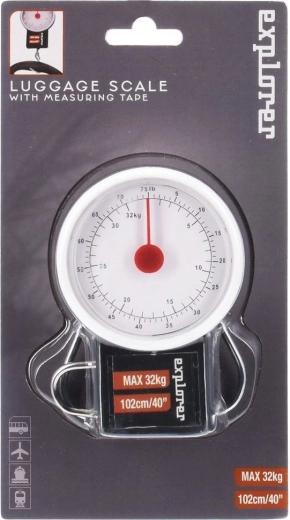 Pèse-bagages mécanique compact avec crochet et mètre rétractable, idéal pour les voyages. Permet de vérifier rapidement le poids de la valise avant le départ et d’éviter les frais d’excédent. Offre une capacité jusqu’à 32 kg, un cadran analogique lisible en kg et lb, une poignée métallique pliable et un mètre rétractable jusqu’à 100 cm. Sans piles, toujours prêt à l’emploi.