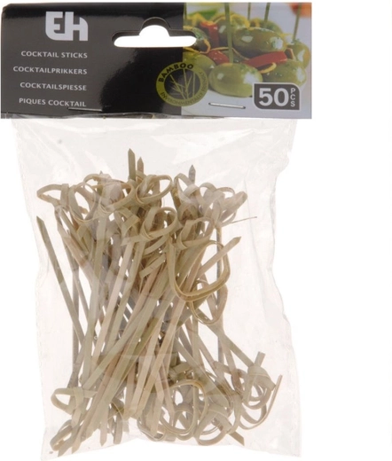 Piques en bambou élégantes avec nœud décoratif, longueur 9 cm, pack de 50 pcs. Idéales pour servir des canapés, des fruits, des burgers et des garnitures de cocktails. Fabriquées en bambou naturel, elles ont une pointe acérée pour une perforation facile et une tête boucle pratique pour une prise sûre et une meilleure présentation. Un choix solide, durable et polyvalent pour les fêtes à la maison comme pour la restauration.