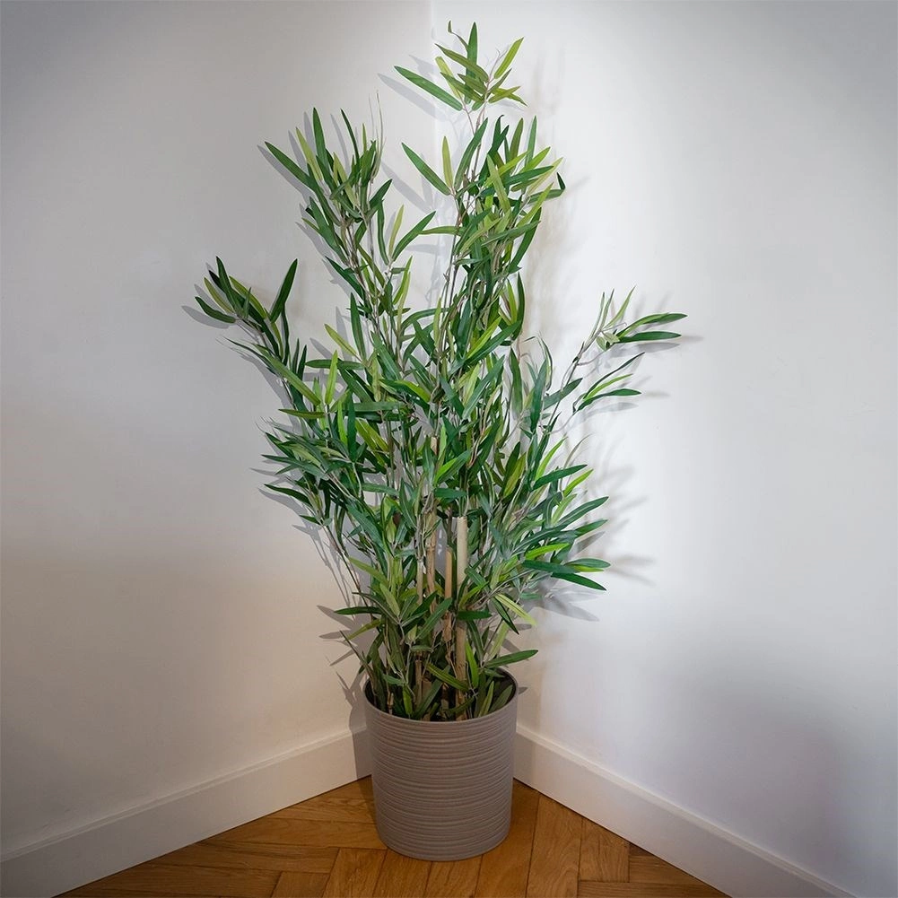 Ce bambou artificiel en pot se distingue par la texture naturelle de ses feuilles et son feuillage dense au rendu très réaliste. Grâce à des matériaux de qualité, il conserve sa forme et sa couleur, apportant une élégante touche de vert à tout intérieur, sans arrosage ni chute de feuilles.