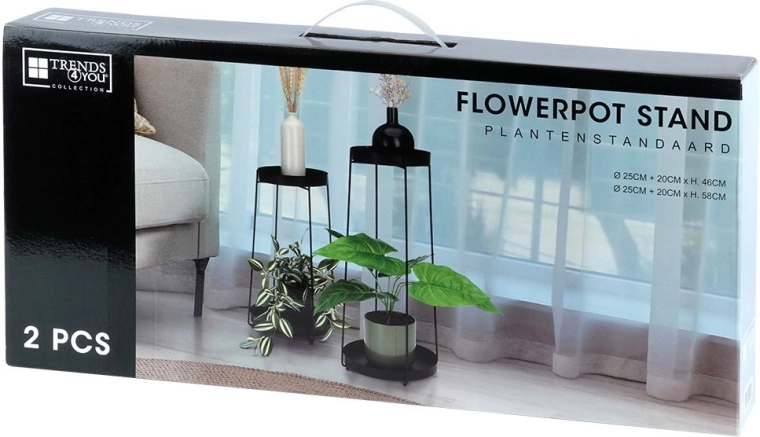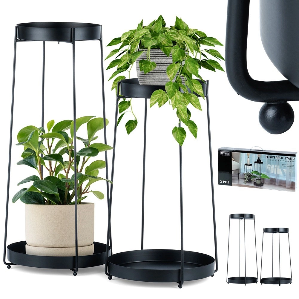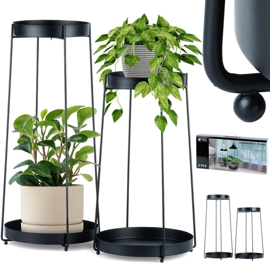 Le lot comprend deux supports de 46 et 58 cm avec plateaux amovibles pour un nettoyage aisé et un déplacement simple des plantes. Grâce à la structure métallique stable, ils supportent en toute sécurité la plupart des pots standard et conviennent également aux décorations et petits accessoires.