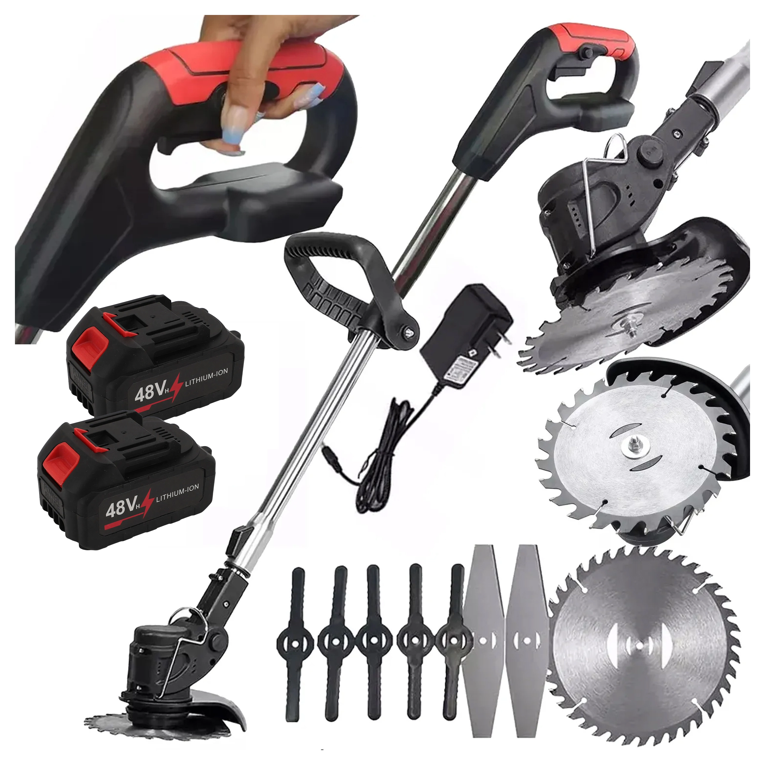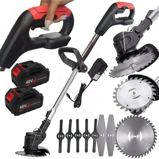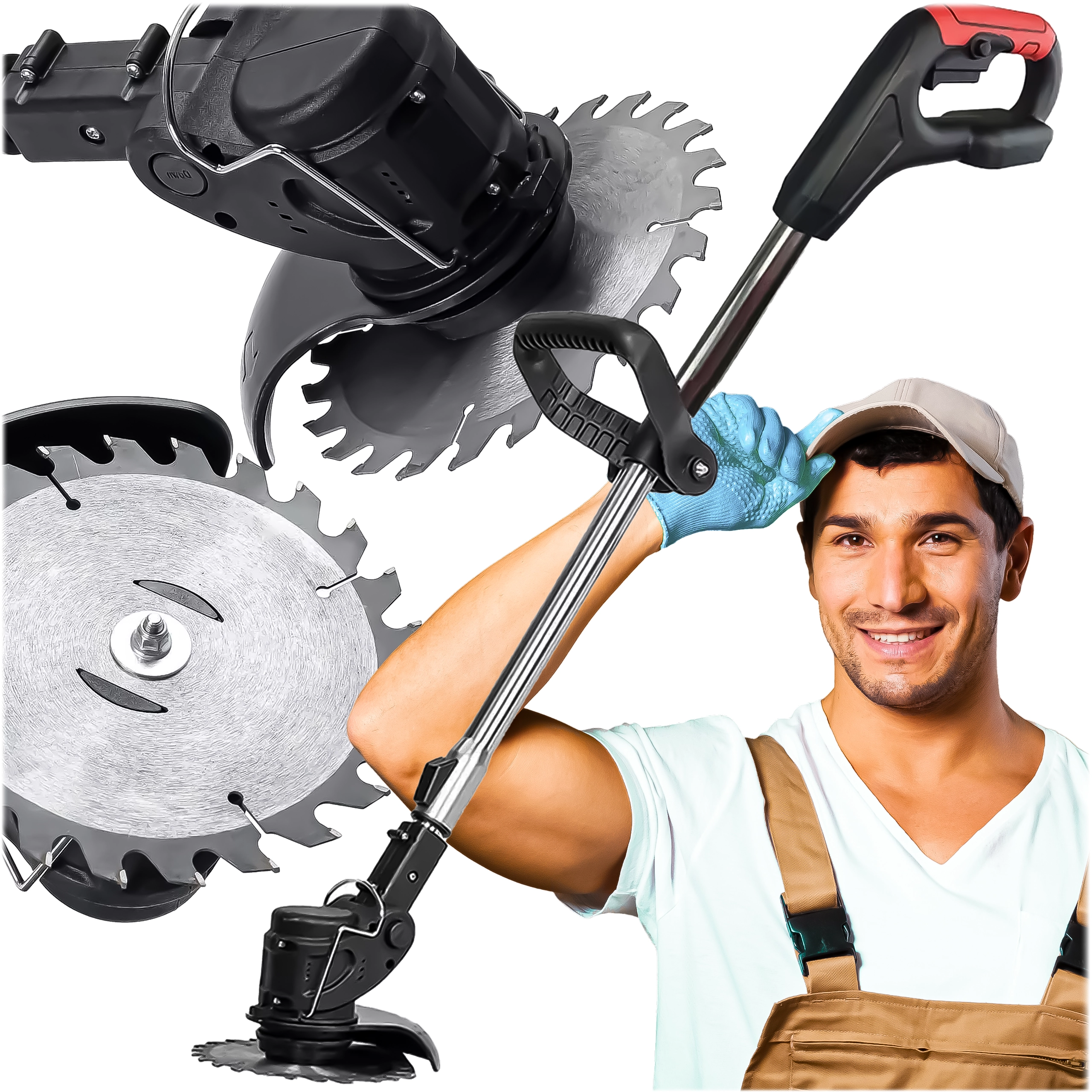La machine est livrée avec 2× batteries Li‑Ion 48 V et un chargeur, afin que vous puissiez travailler plus longtemps sans pauses inutiles. Grâce à l’inclinaison de tête réglable et à la poignée auxiliaire, vous obtenez des arêtes nettes le long des allées, des clôtures et autour des arbres. Sa construction robuste et la possibilité d’utiliser des lames en plastique, lame métallique et disques scie en font un assistant polyvalent pour tout jardin.