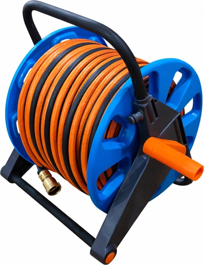 Le tambour accueille jusqu’à 50–60 m de tuyau de jardin, idéal pour les grands jardins et une plus grande portée.