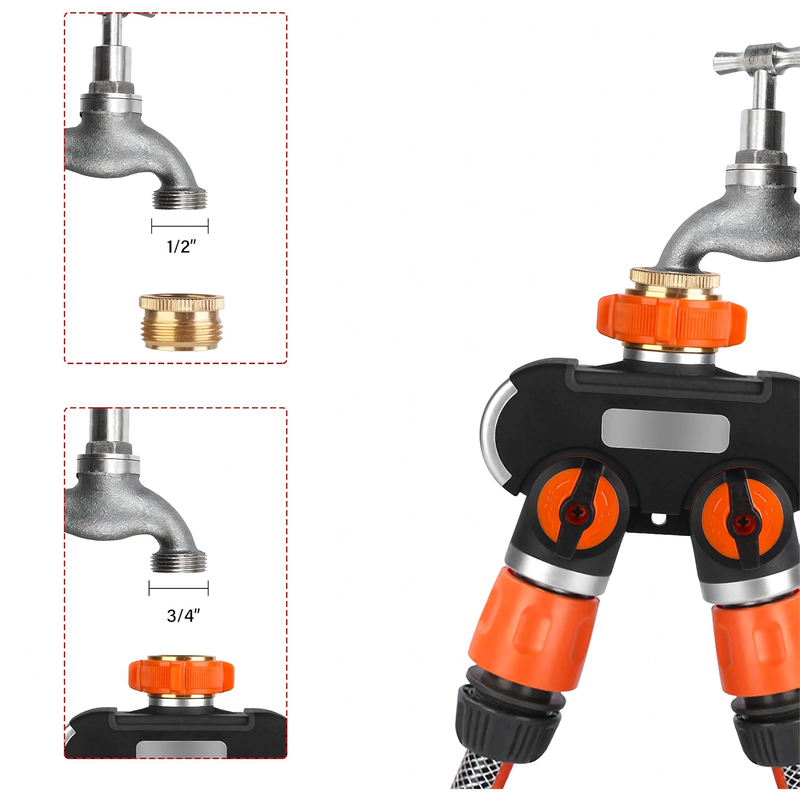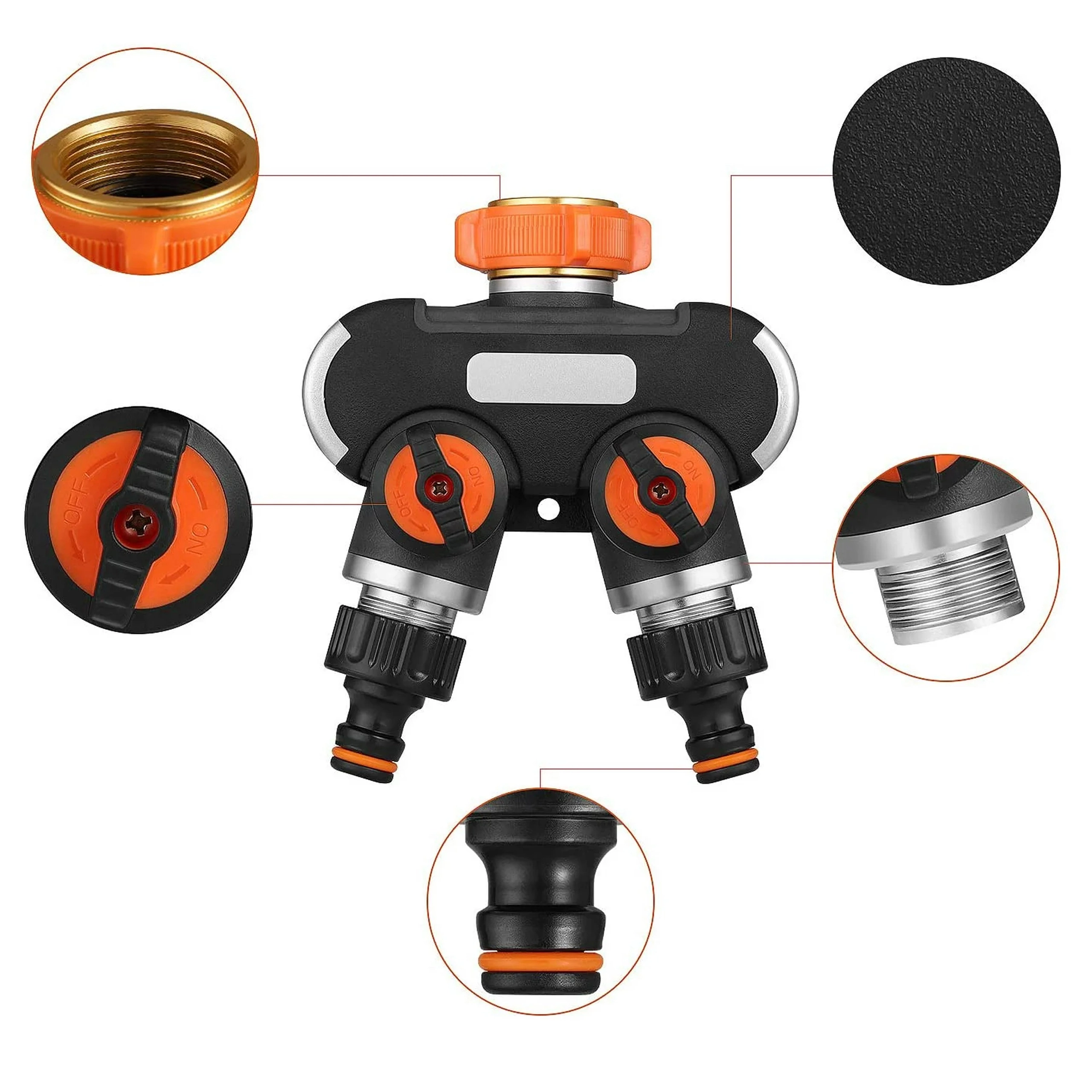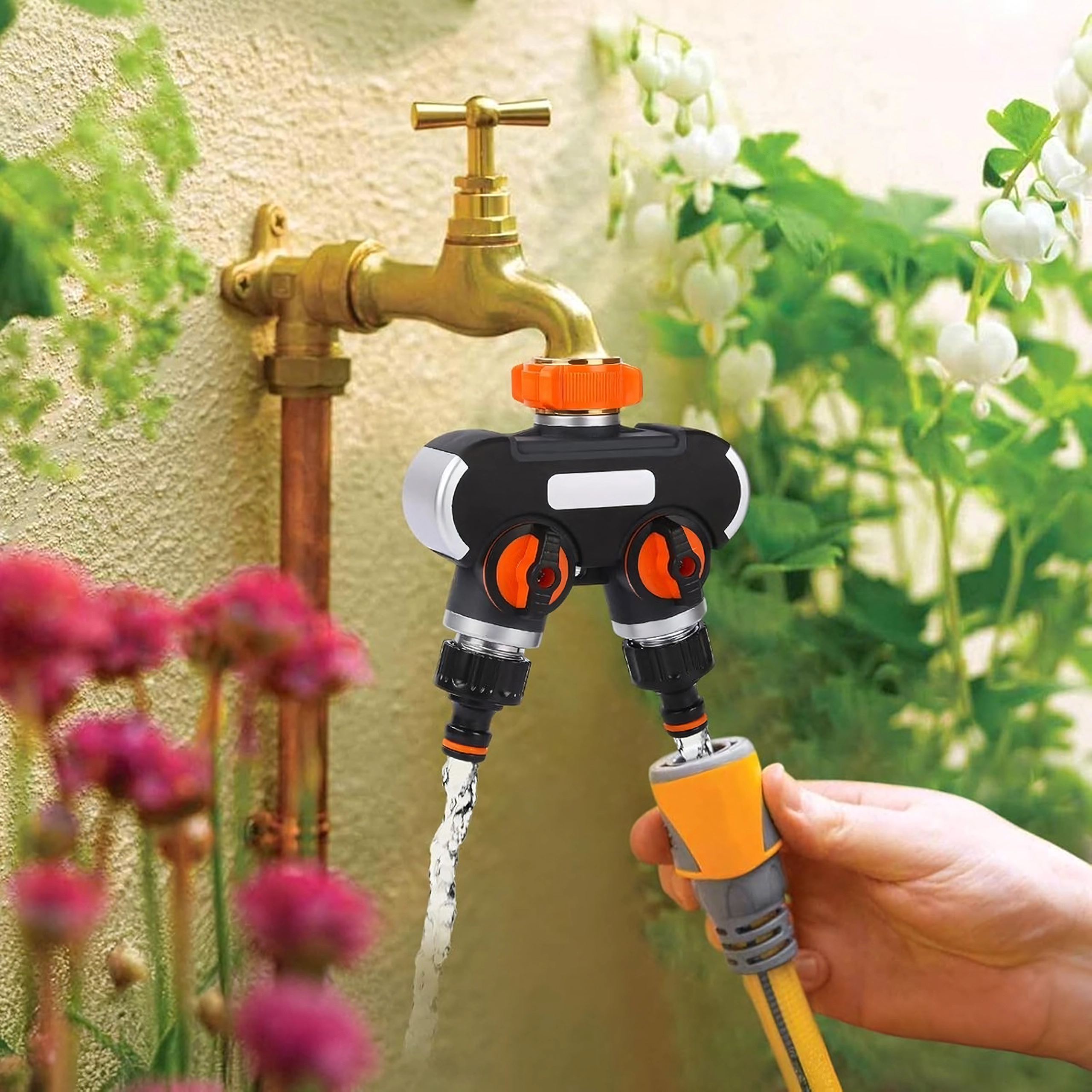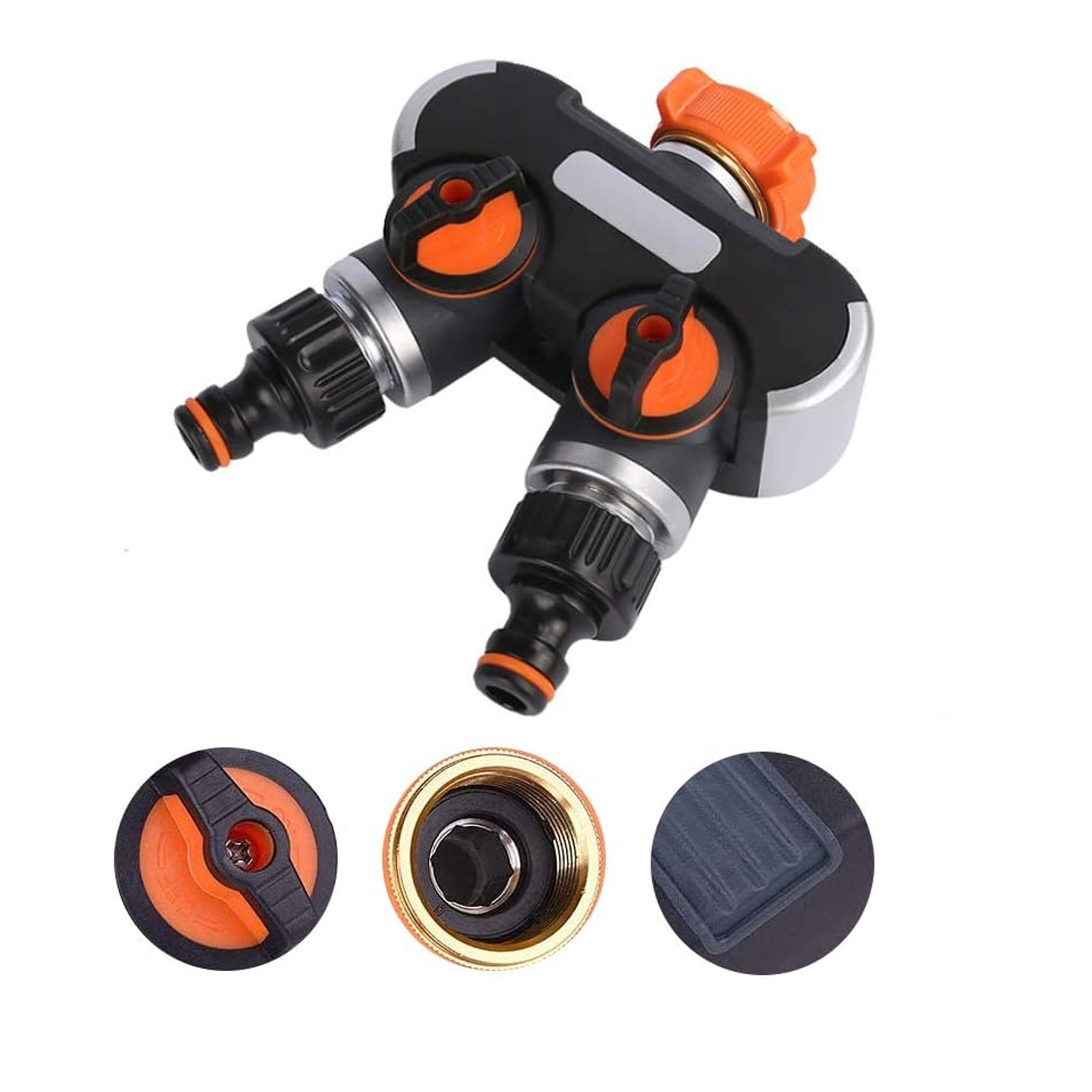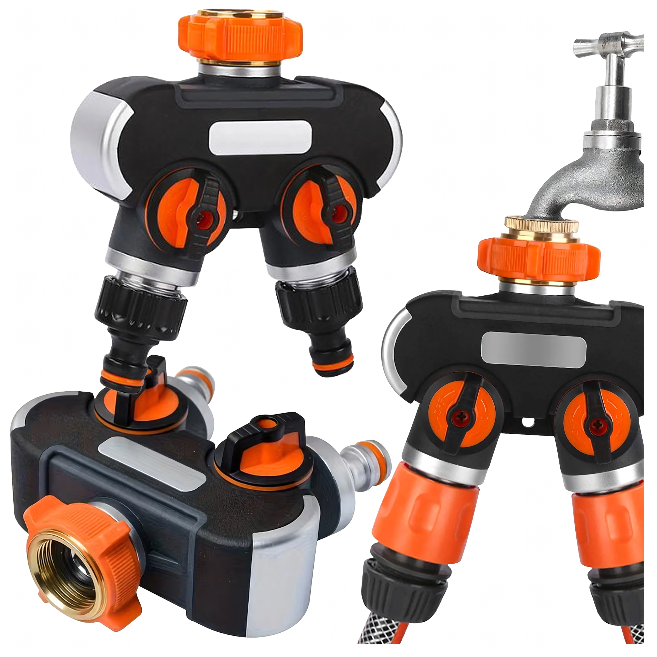 Pratique répartiteur à deux voies transformant un seul robinet en deux sorties commandées séparément. Chaque sortie possède sa propre vanne pour un réglage précis du débit et des raccords rapides pour un branchement facile des tuyaux. Idéal pour arroser et alimenter un arroseur simultanément. Conception robuste et commandes ergonomiques pour une longue durée de vie et un usage confortable. Sortie à deux voies, réglage de débit indépendant, raccordement rapide des tuyaux, montage facile.