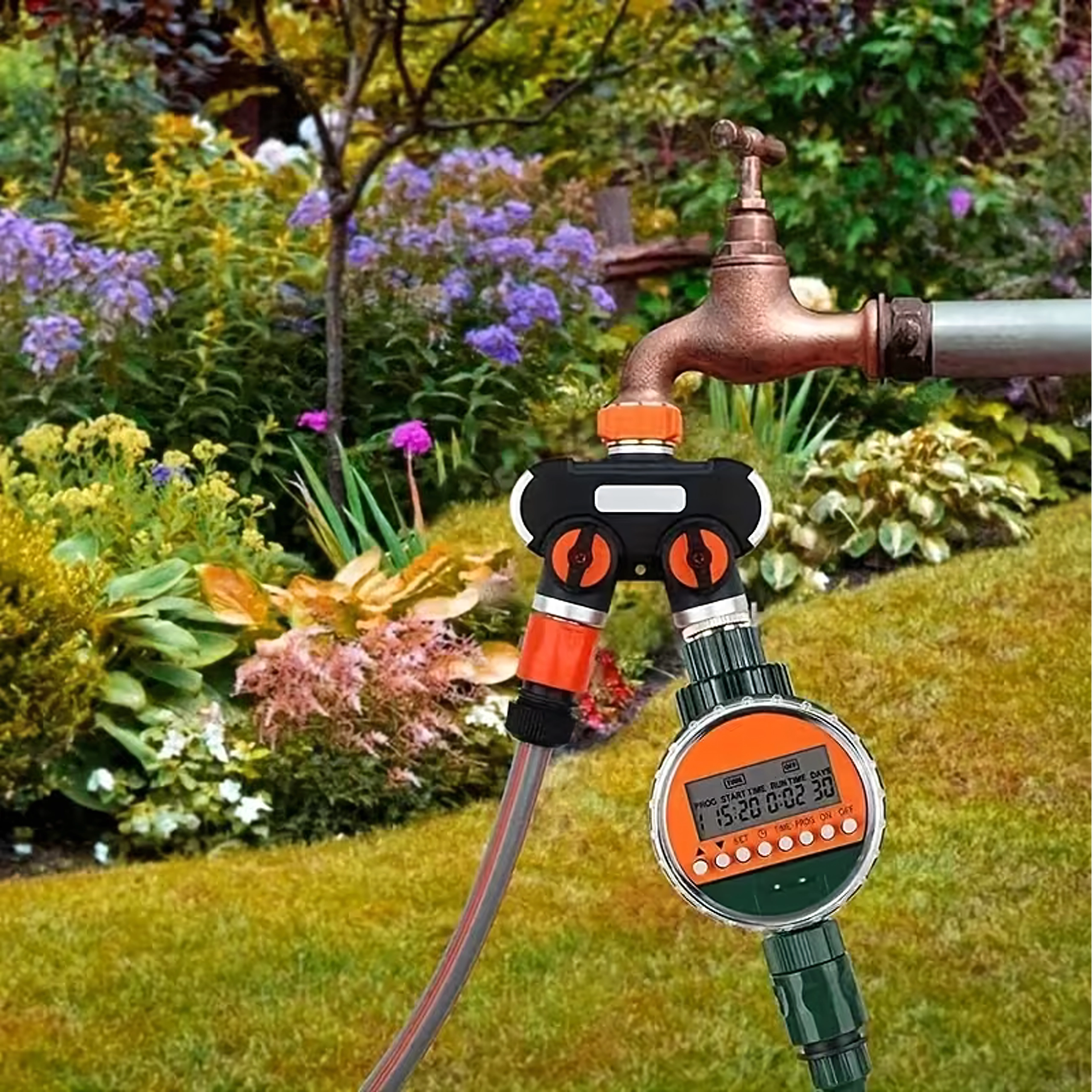 Le corps robuste avec des connecteurs de qualité est conçu pour une utilisation extérieure durable. Les commandes ergonomiques offrent une bonne prise en main même mouillée et facilitent un ajustement rapide. Une solution idéale pour jardins, serres et cours, lorsque vous devez desservir deux zones en même temps.