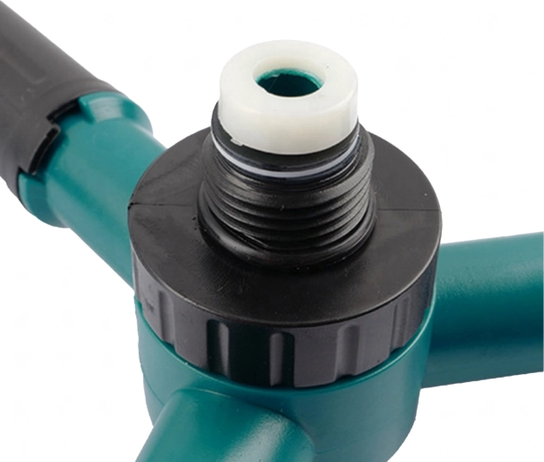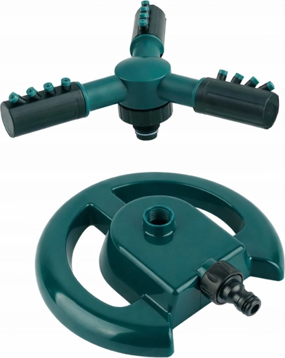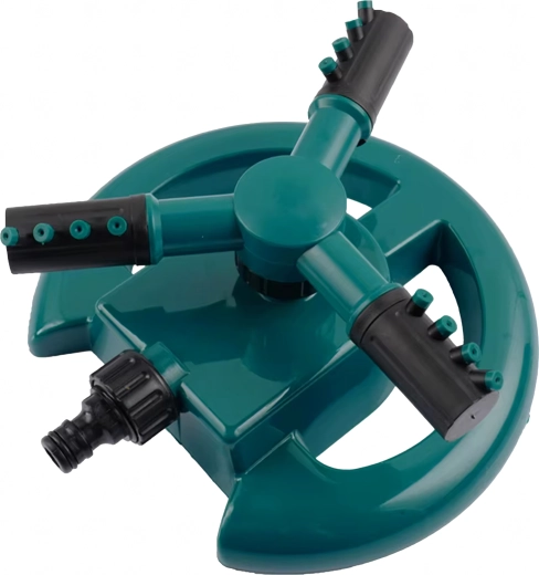 Ce gicleur rotatif à trois bras est idéal pour l’arrosage régulier des pelouses, des massifs fleuris et des rangs de légumes. Sa base circulaire robuste assure la stabilité en fonctionnement, tandis que les multiples buses sur les bras diffusent une pluie fine pour un arrosage doux et homogène.