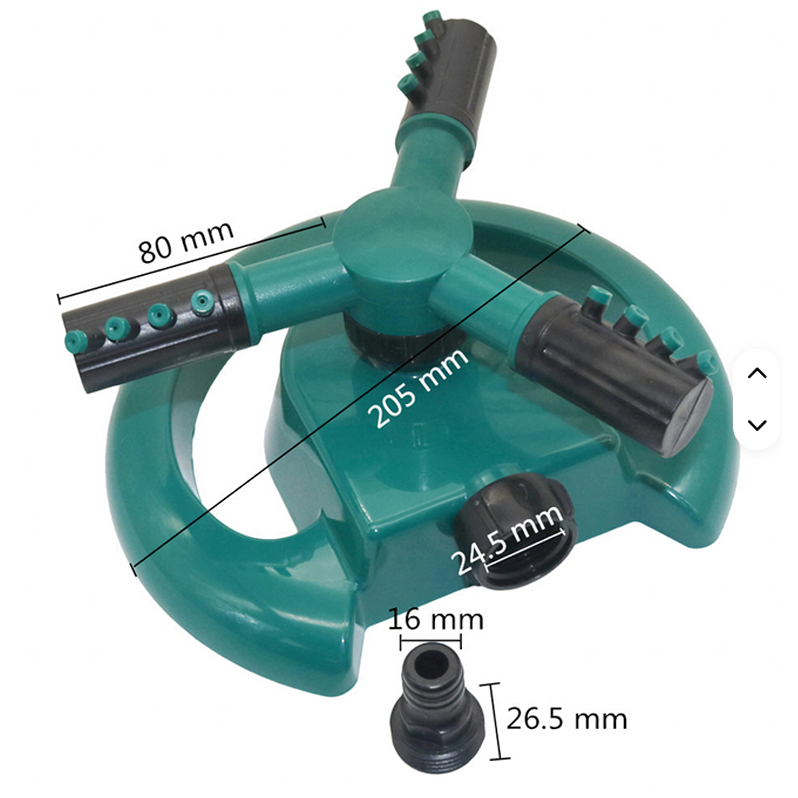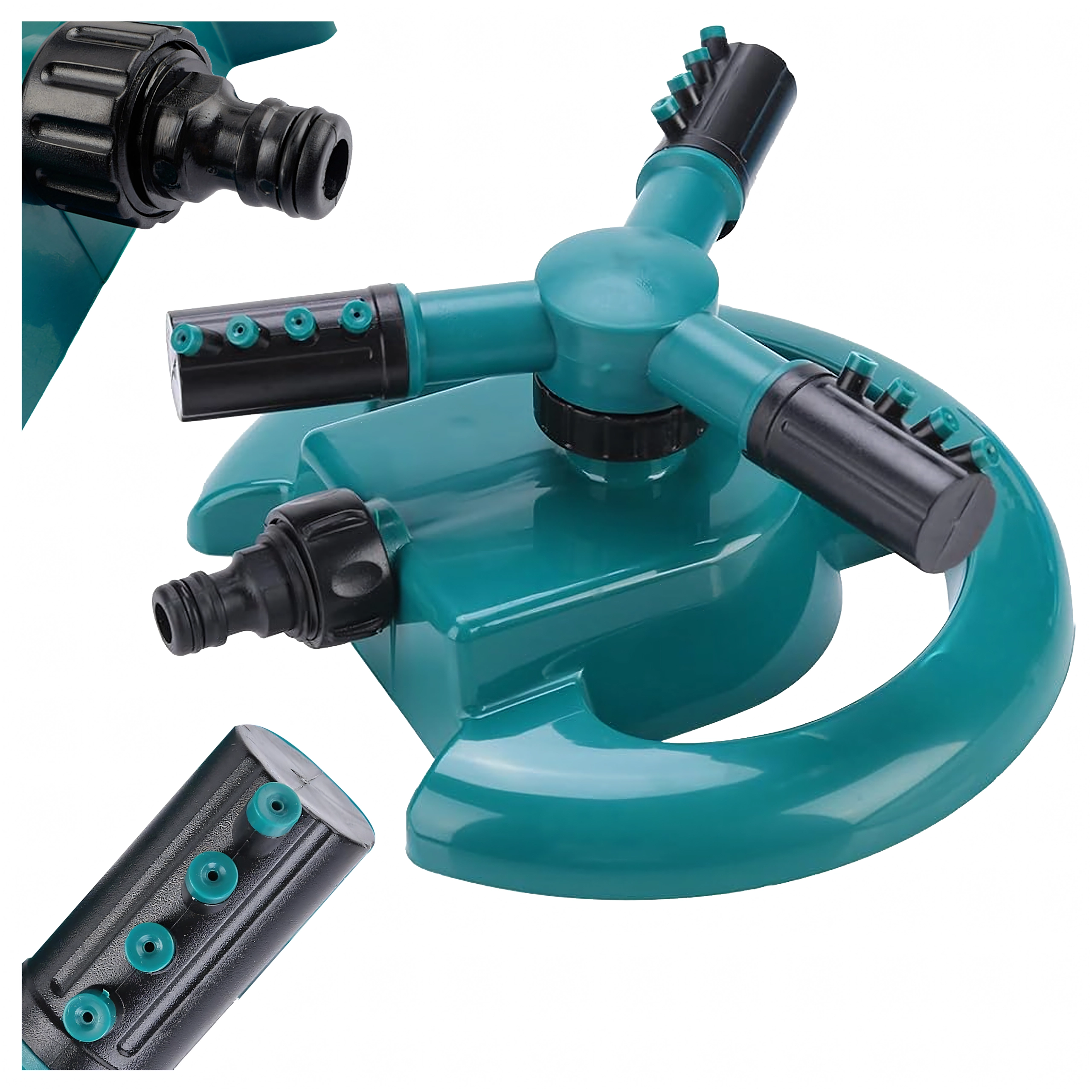 Arroseur de jardin pratique avec tête à trois bras assurant une irrigation uniforme de votre pelouse et de vos massifs. Grâce à la rotation à 360° et aux buses réglables, il couvre une large surface, offre une bonne stabilité, se raccorde facilement à un tuyau d’arrosage standard et permet d’économiser du temps et de l’eau.
