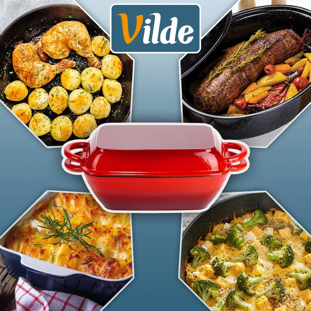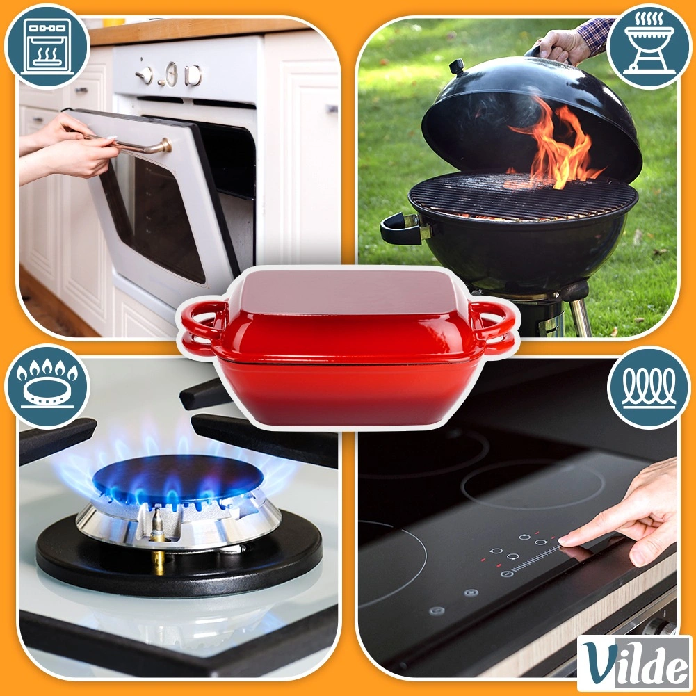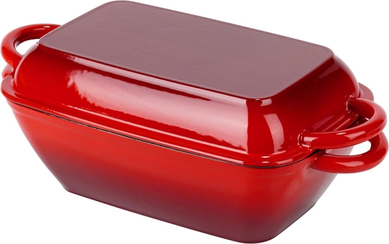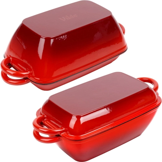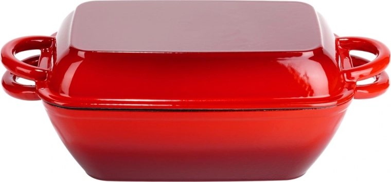 Ensemble de rôtissoires universel en fonte 2-en-1 pour rôtir, mijoter et gratiner. Le couvercle sert de poêle-gril indépendante avec fond rainuré, tandis que la cocotte offre une répartition homogène de la chaleur et une rétention thermique prolongée. Finition émaillée résistante, poignées latérales confortables et utilisation sur tous types de plaques, y compris induction, ainsi qu’au four.