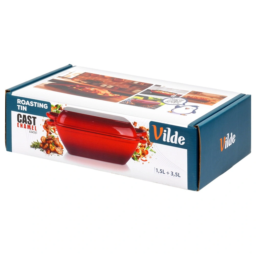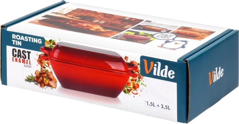 Avec cet ensemble en fonte 2-en-1, préparez des rôtis juteux, des plats mijotés généreux et des légumes croustillants. La rôtissoire inférieure (3,5 l) est idéale pour rôtir et mijoter, le couvercle supérieur (1,5 l) peut être utilisé séparément comme petit plat à rôtir ou poêle-gril à surface rainurée. La surface émaillée est résistante, facile à nettoyer et aide à prévenir l’adhérence.