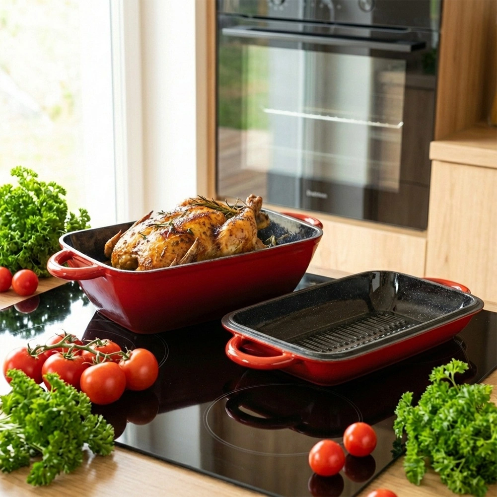 - Ensemble de rôtissoires en fonte émaillée 2-en-1