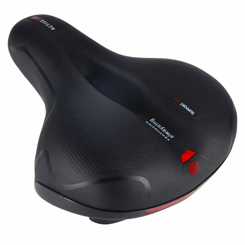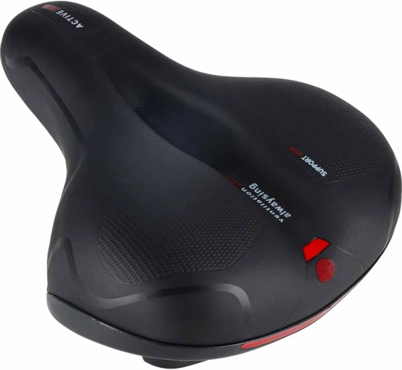 Cette selle de vélo confortable pour la ville comme pour le trekking offre une forme ergonomique large, un rembourrage en mousse élastique et une double suspension à ressorts pour une conduite fluide sans points de pression. Grâce au canal de ventilation central, la selle reste aérée, la surface imperméable en cuir PU résiste à la pluie et le catadioptre arrière intégré augmente la visibilité à la tombée de la nuit.