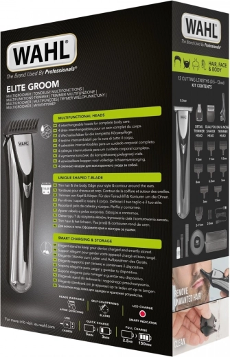 ELITE GROOM est une tondeuse multifonction moderne conçue pour une mise en forme rapide et précise des cheveux, de la barbe et des poils du corps. Grâce à la lame en T, vous créez des lignes nettes et des contours précis, tandis que les têtes interchangeables couvrent tout, de la stylisation de détail à la finition lisse.