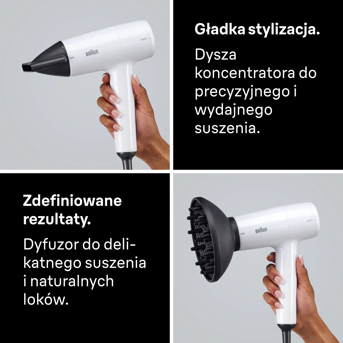 Découvrez un sèche-cheveux fiable qui combine une puissance de 1800 W avec des accessoires pratiques pour un coiffage polyvalent. Grâce à son corps compact et à sa poignée ergonomique, il tient bien en main et se manie facilement. Le concentrateur dirige le flux d’air précisément là où vous en avez besoin, tandis que le diffuseur répartit l’air en douceur pour un volume naturel et des vagues définies.