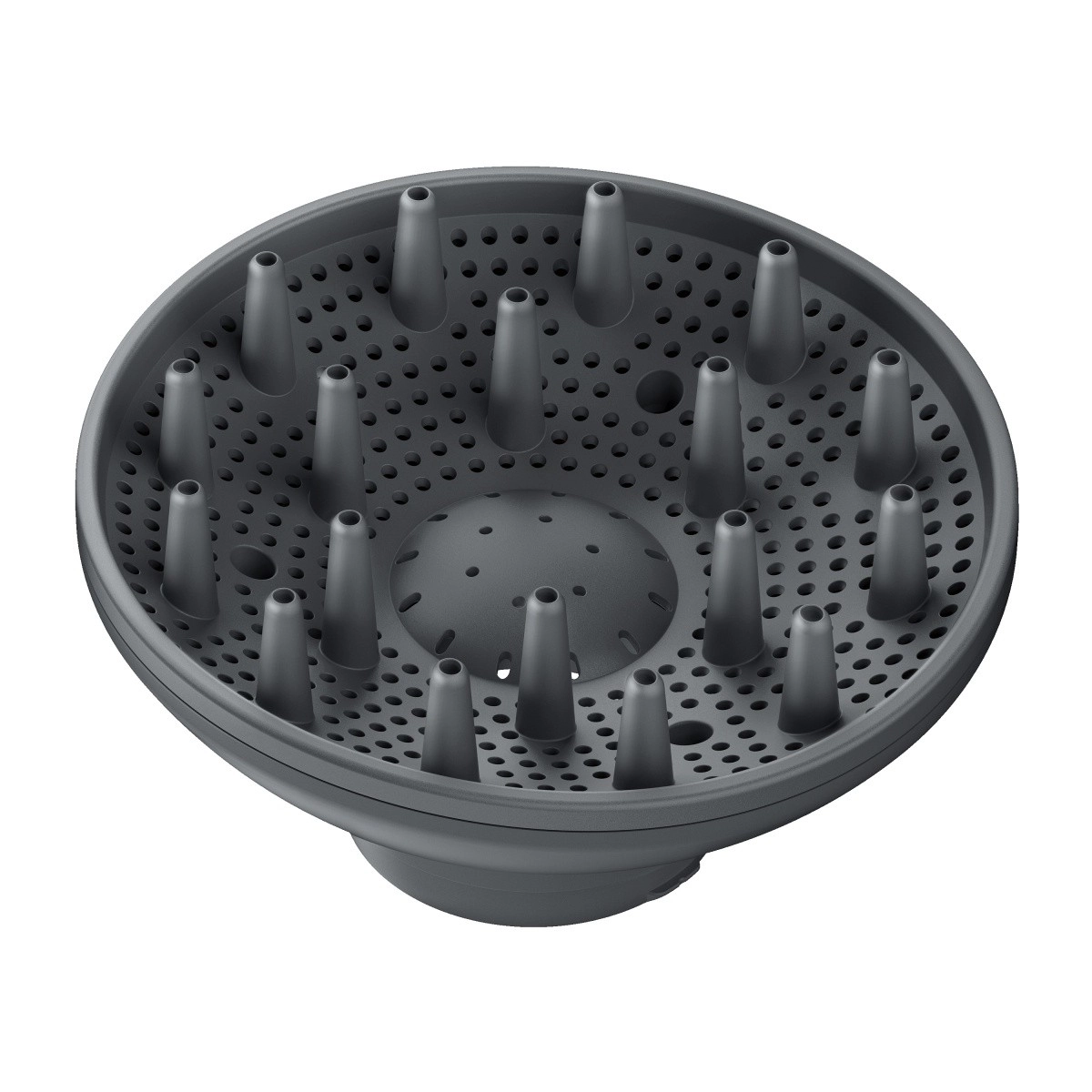 Le diffuseur léger en plastique avec de longues picots répartit délicatement la chaleur et soutient la forme des boucles naturelles. Il aide à réduire les frisottis et protège la structure du cheveu.
