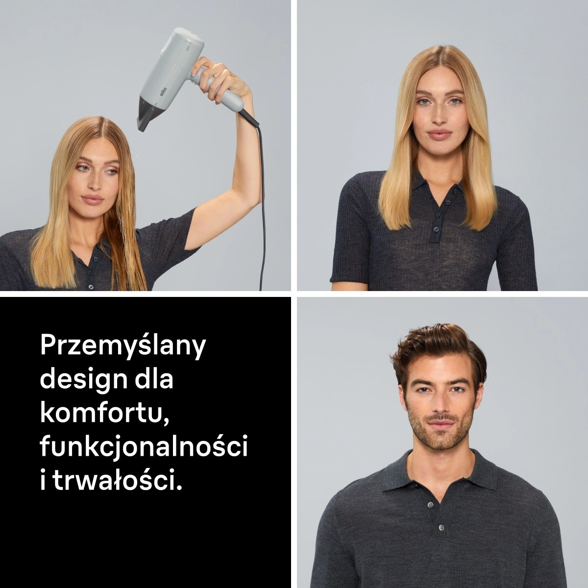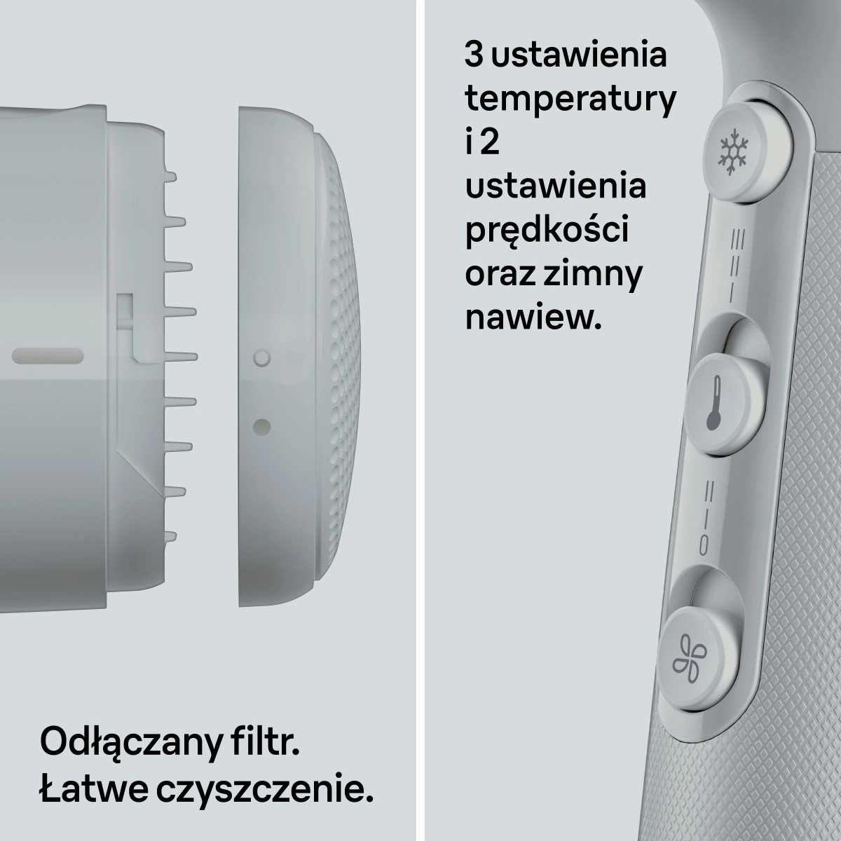 Design ergonomique compact, plusieurs niveaux de température et de vitesse, et touche air froid pour un réglage de séchage parfait.