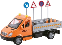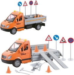 Le coffret inclut des cônes de signalisation, des panneaux, des barrières et de petits outils, grâce auxquels les enfants créent facilement leur propre chantier ou une route fermée. La fabrication robuste en plastique est sûre et adaptée à un usage quotidien.