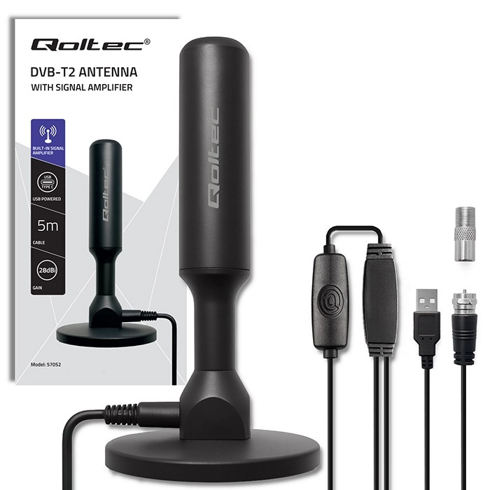 Alimentation directement depuis la TV ou le décodeur via USB. Le connecteur F-Male s’adapte à la plupart des tuners et téléviseurs DVB-T/T2.