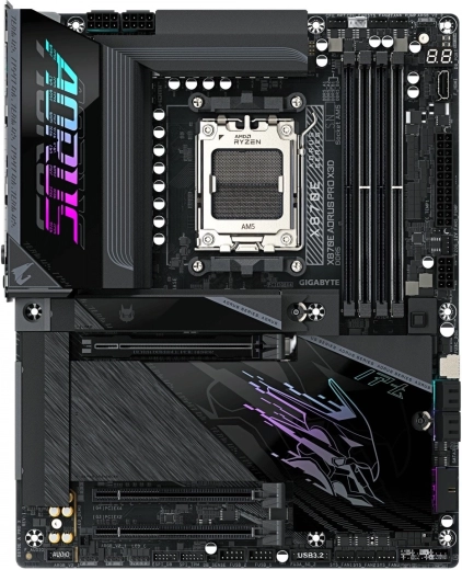 Carte mère AM5 hautes performances pour processeurs AMD Ryzen 9000/8000/7000 avec une stabilité d’alimentation extrême, un refroidissement VRM de premier ordre, la prise en charge de la DDR5 jusqu’à 9000 MT/s et un stockage ultra‑rapide M.2 PCIe 5.0. Offre le Wi‑Fi 7, le LAN 5GbE, un double USB4 Type‑C, l’installation facile des SSD grâce au M.2 EZ‑Latch et des fonctions intelligentes comme le X3D Turbo Mode 2.0 pour des performances maximales.