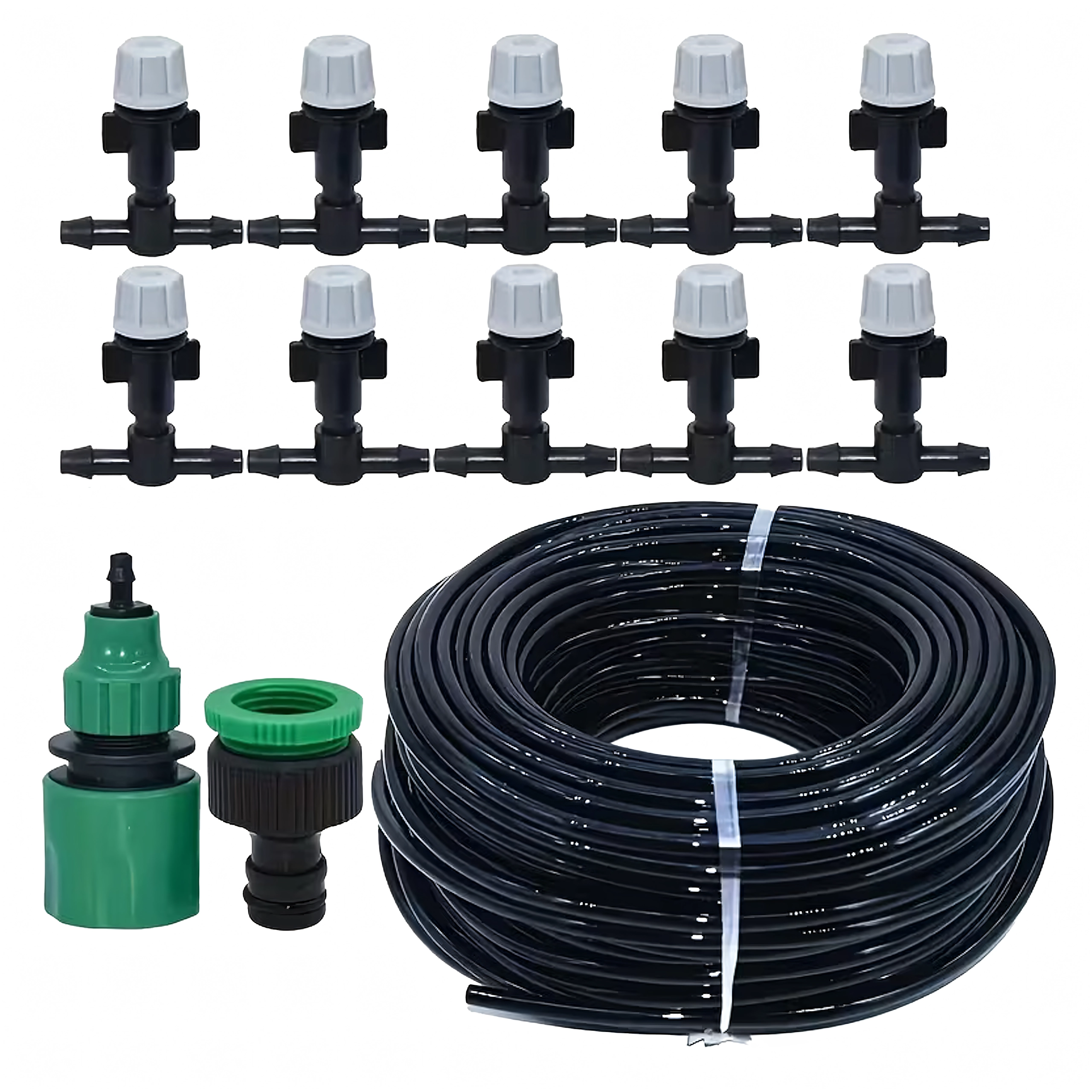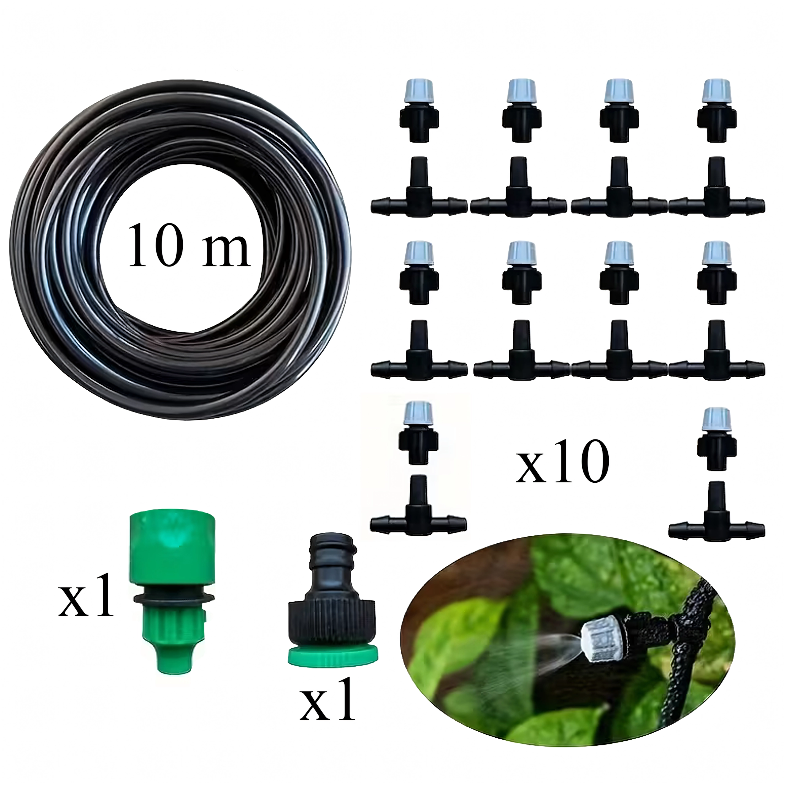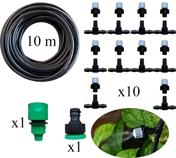 Ce système de brumisation de jardin polyvalent offre un arrosage doux et uniforme directement aux racines comme au feuillage. Grâce aux buses réglables, créez une brume rafraîchissante pour les terrasses et serres ou un micro-jet ciblé pour les massifs de culture et jardinières. Le système assure une distribution d’eau stable en plusieurs points et s’étend facilement à l’aide de connecteurs en T.