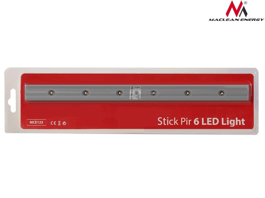 La lampe LED sous-meuble MACLEAN ENERGY est idéale pour la cuisine, le garde-manger ou le dressing. Grâce au capteur de mouvement PIR intégré, la lumière s’allume automatiquement lorsque vous approchez et fournit un éclairage agréable sans câblage. Son format compact et allongé avec 6 LED assure une lumière uniforme d’une intensité de 50 lumens.