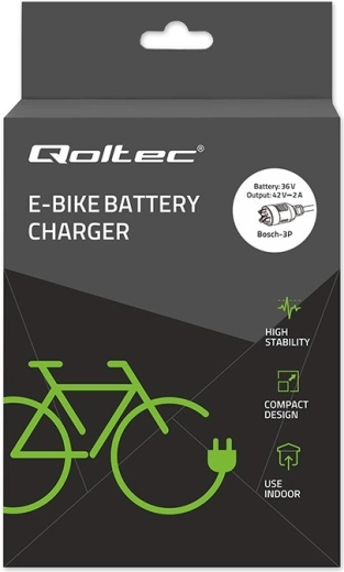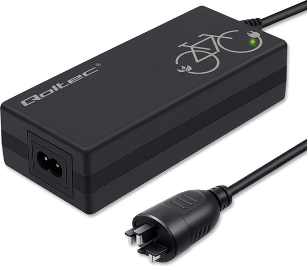 Le chargeur Qoltec pour e-bikes est conçu pour les batteries lithium-ion 36 V et fournit une tension de charge stable de 42 V avec un courant de 2 A (puissance 84 W). Il se branche sur une prise 230 V standard et, grâce à la LED, vous voyez immédiatement si la charge est en cours (rouge) ou si la batterie est complètement chargée (vert). Sa construction robuste avec indice de protection IP54 résiste à la poussière et aux éclaboussures d’eau, idéale pour le garage, sous abri ou en extérieur.
