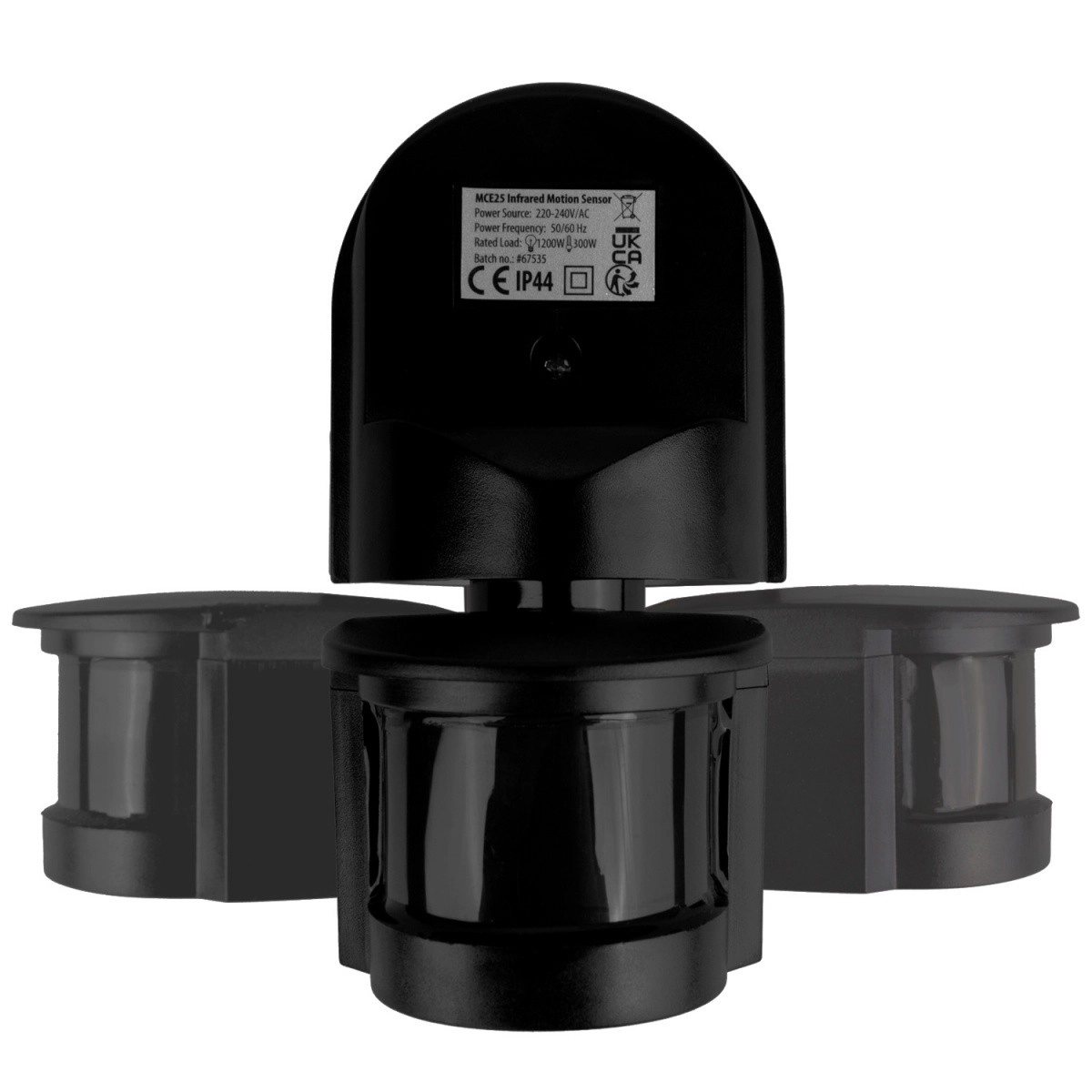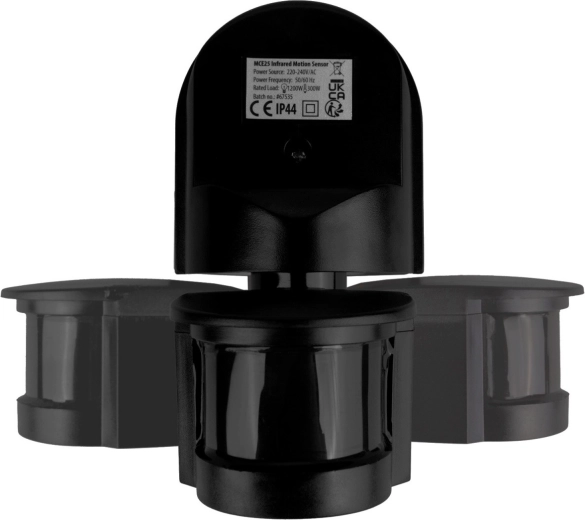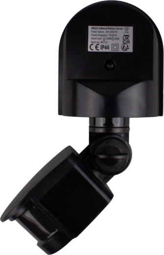 Détecteur PIR de mouvement et de crépuscule 180° avec visière noire, portée 5–12 m, 1200 W, IP44