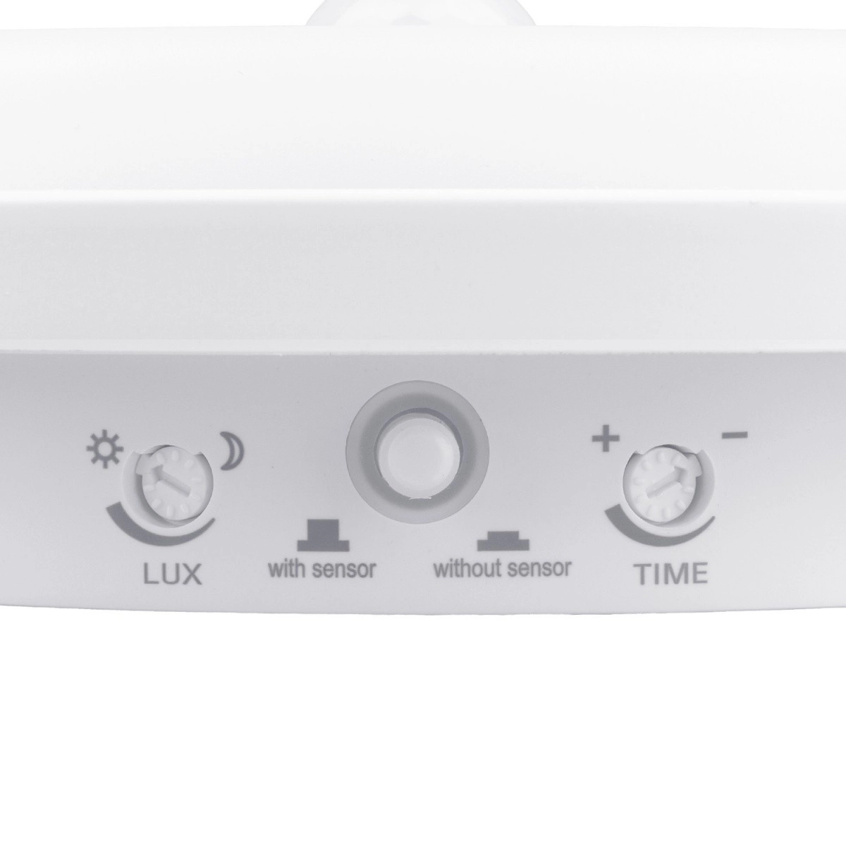 Le capteur de mouvement intégré, avec une portée jusqu’à 9 m et un angle d’environ 140°, couvre une large zone. Grâce au capteur crépusculaire réglable, vous choisissez si la lumière doit réagir de jour comme de nuit, ou uniquement après la tombée de la nuit. Si nécessaire, le capteur peut être désactivé pour utiliser le luminaire en mode d’éclairage permanent.