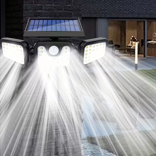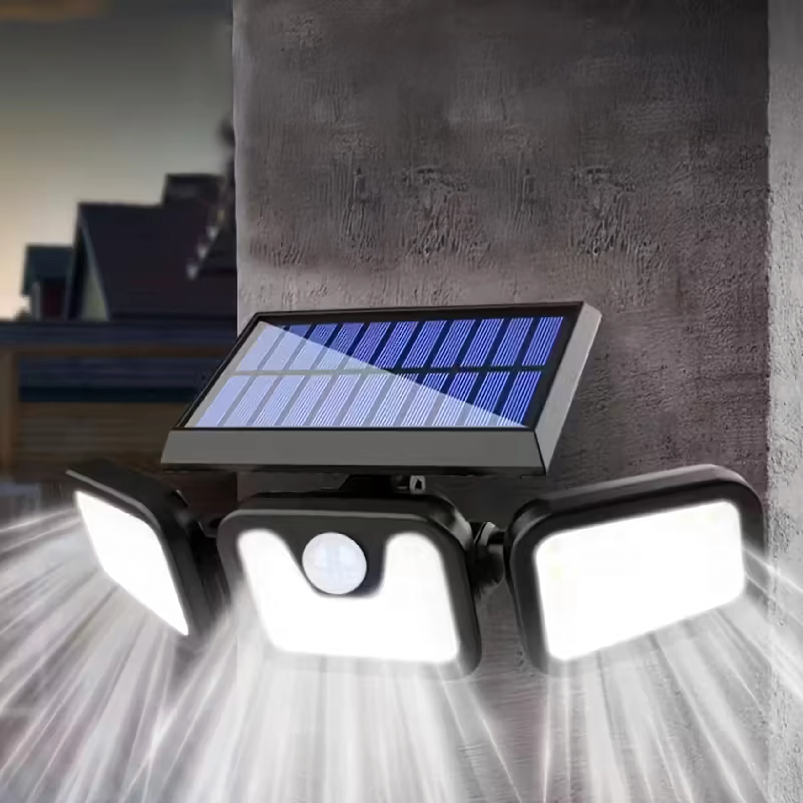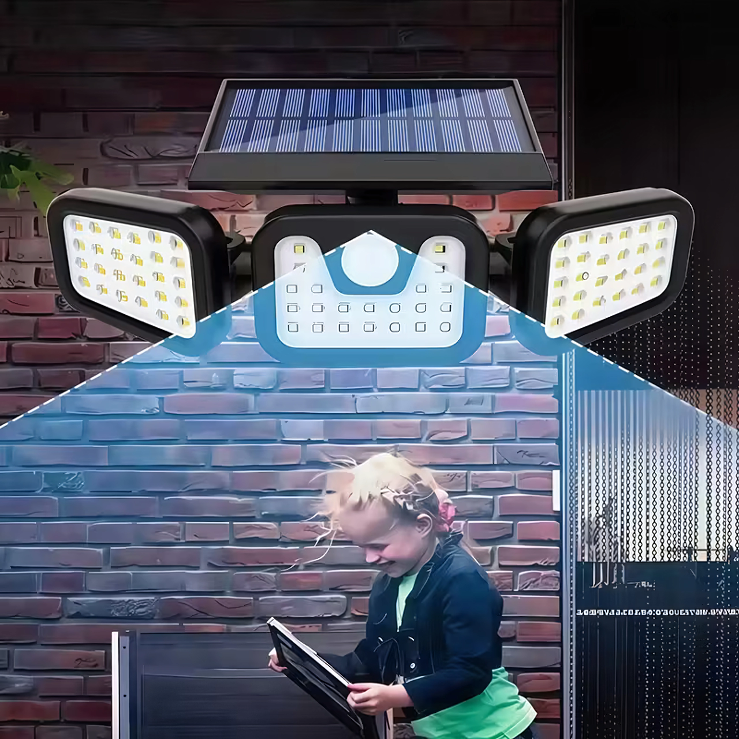 Cette applique LED solaire intelligente avec trois panneaux réglables éclaire uniformément une large surface et améliore la sécurité autour de la maison. Installation sans fil sans raccordement électrique, allumage automatique à la tombée de la nuit ou lors de la détection de mouvement, et longue autonomie en font un choix idéal pour les entrées, garages, jardins et cours.