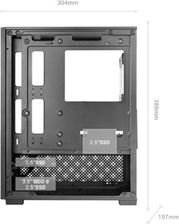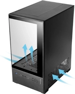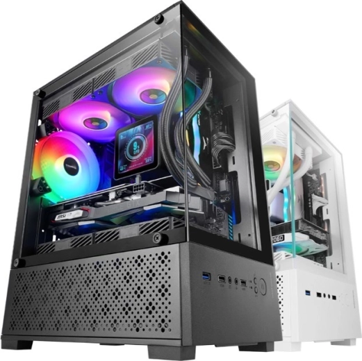 Le boîtier microATX MARS MC-SE2, à la fois élégant et fonctionnel, associe un design moderne à un excellent refroidissement. Il propose du verre trempé sans cadre à l’avant et sur le côté, un ventilateur arrière 120 mm FRGB, une conception à double chambre avec prise en charge du refroidissement liquide, ainsi qu’un Airflow Mesh pour un flux d’air optimisé lors des marathons de jeu.